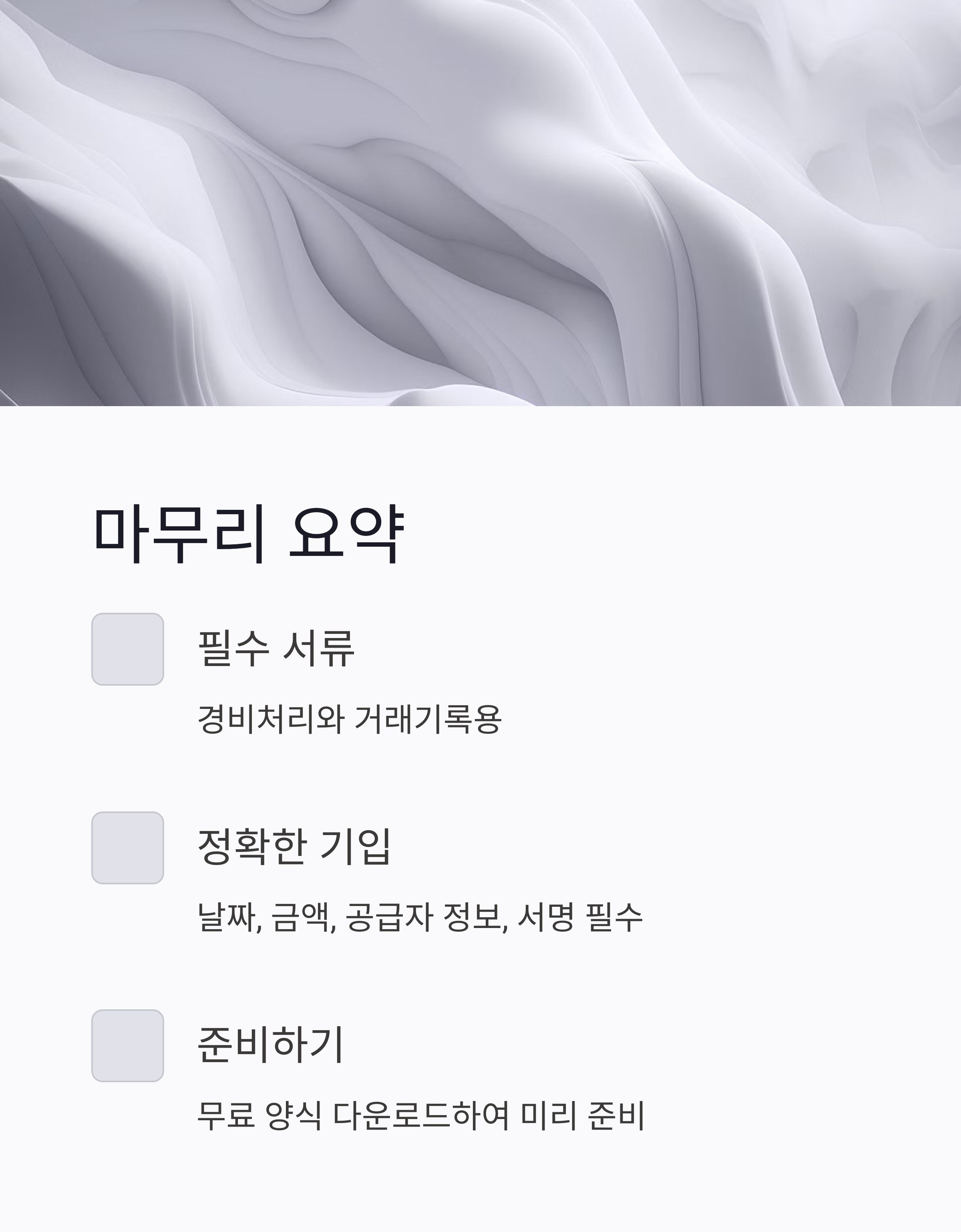 - 날짜, 금액, 공급자 정보, 서명 모두 누락 없이 기입