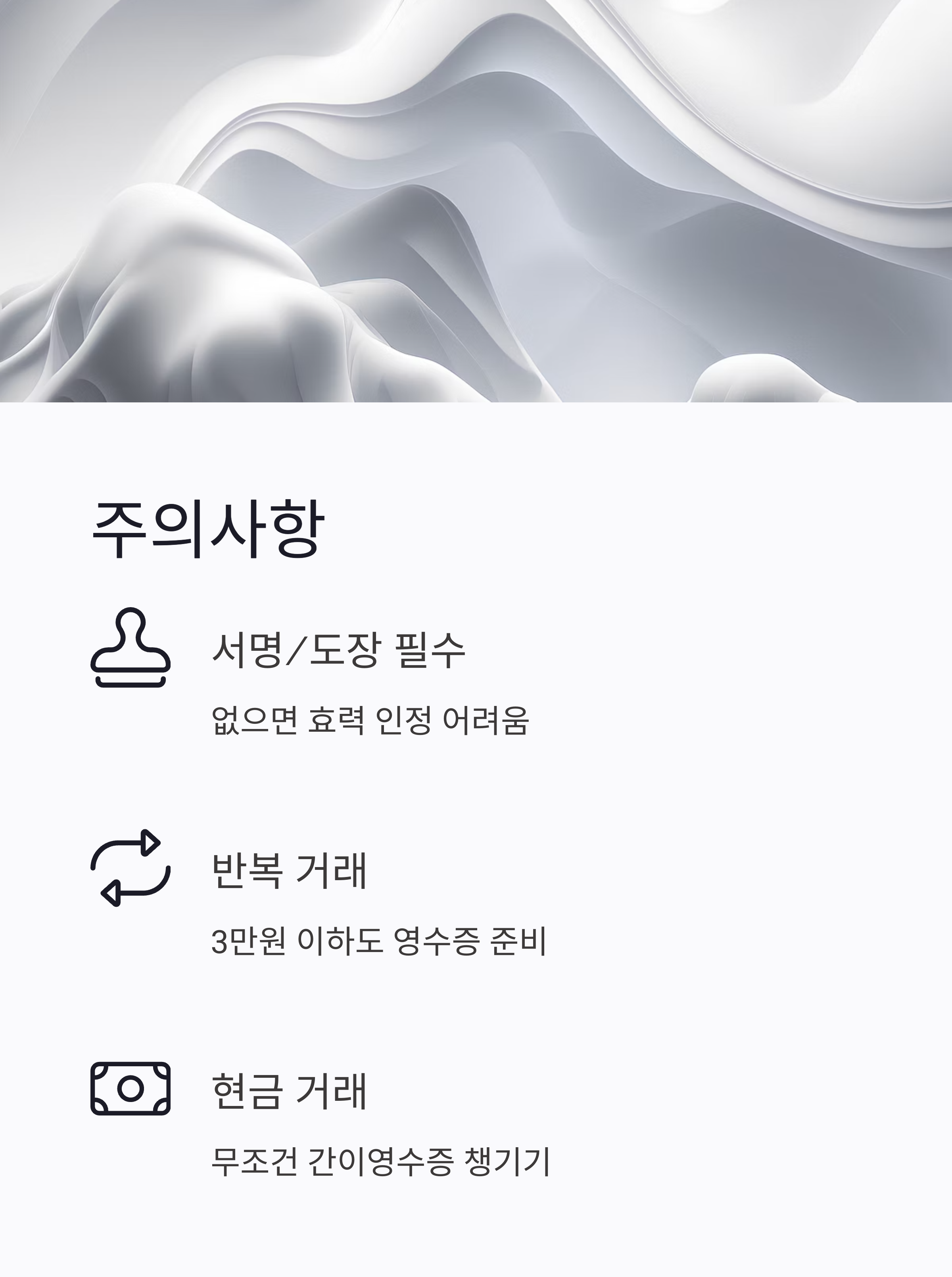 - ✔ 현금 거래는 반드시 간이영수증 챙기기