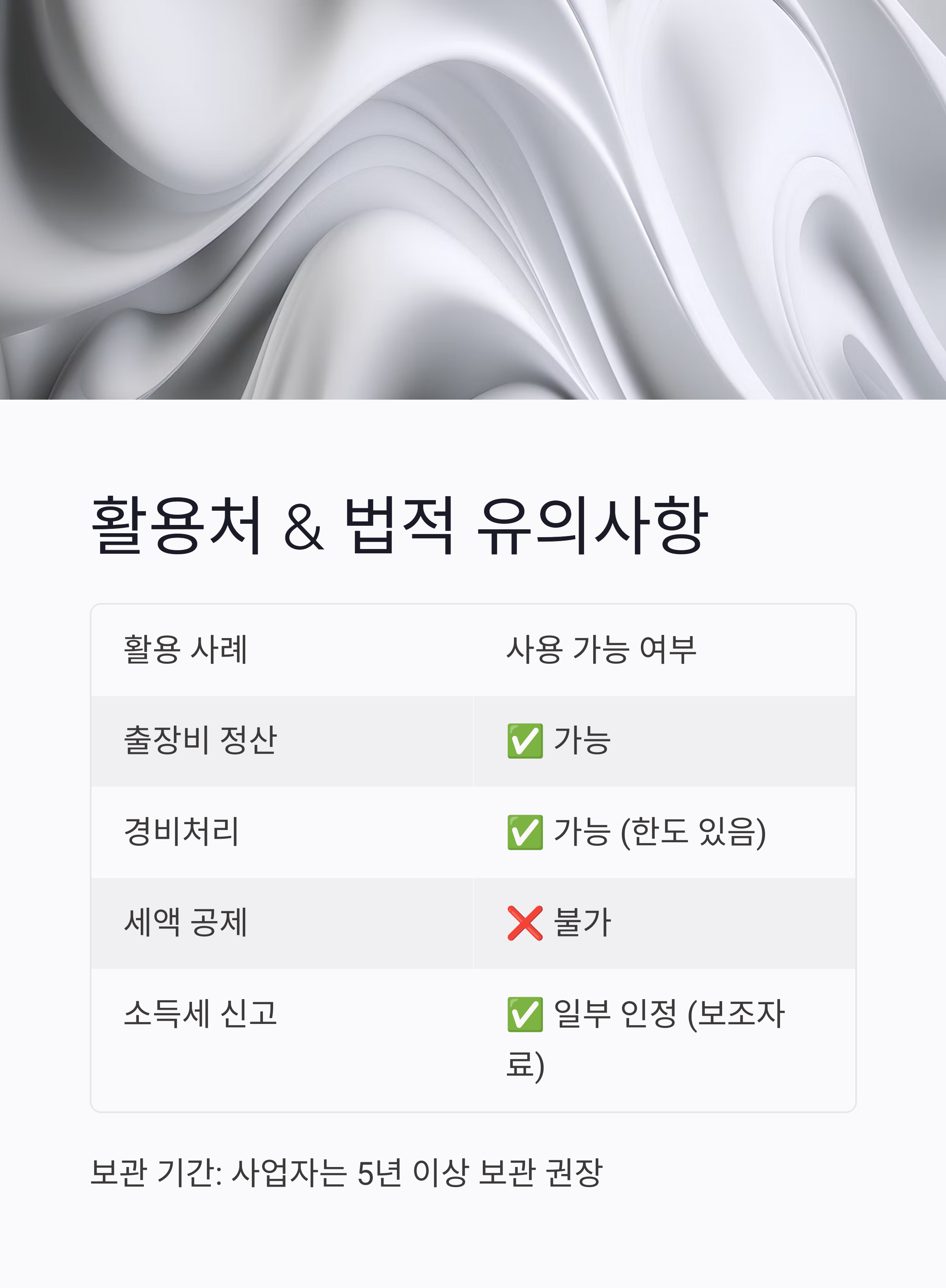- ✔ 전자세금계산서 대체 불가 (단순 경비 증빙용)