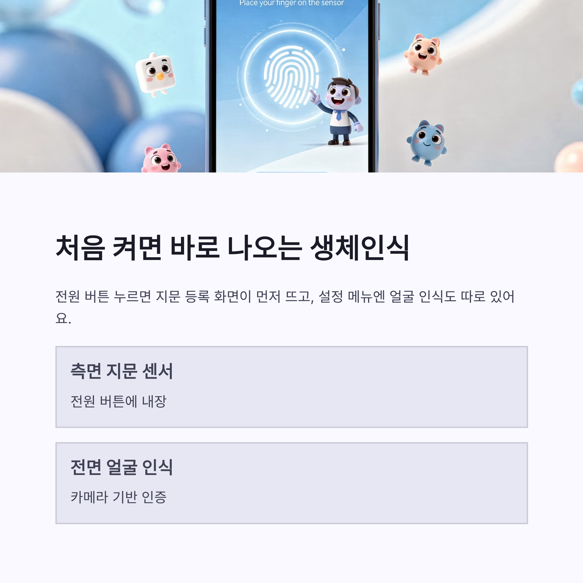 | 인식 위치 | 측면 전원 버튼 | 전면 카메라 |