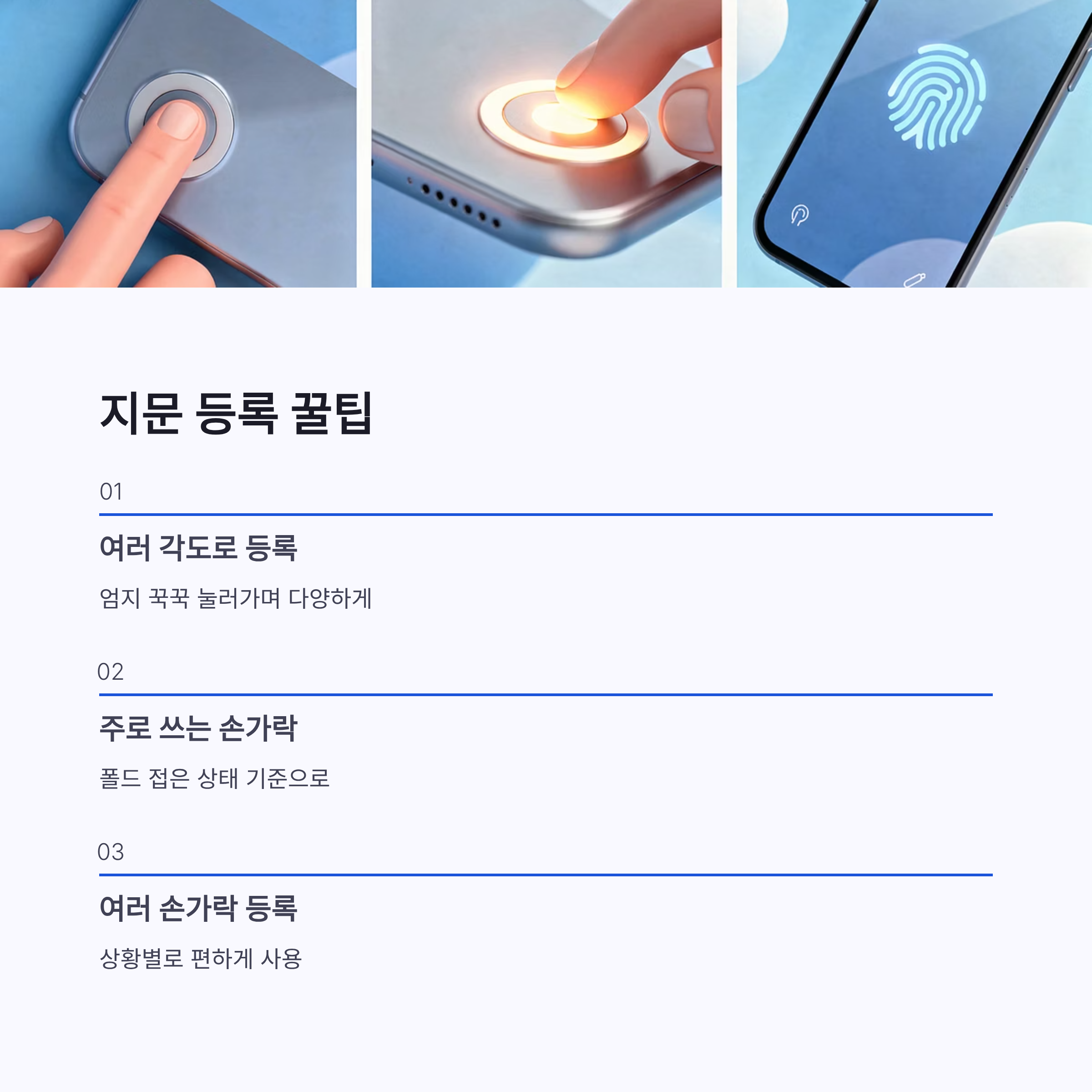 이거 은근 중요한데, 지문 등록할 때 대충 하면 나중에 인식 안 돼서 짜증나요 ㅠㅠ 제가 해보고 느낀 팁은 요런 것들이었어요.