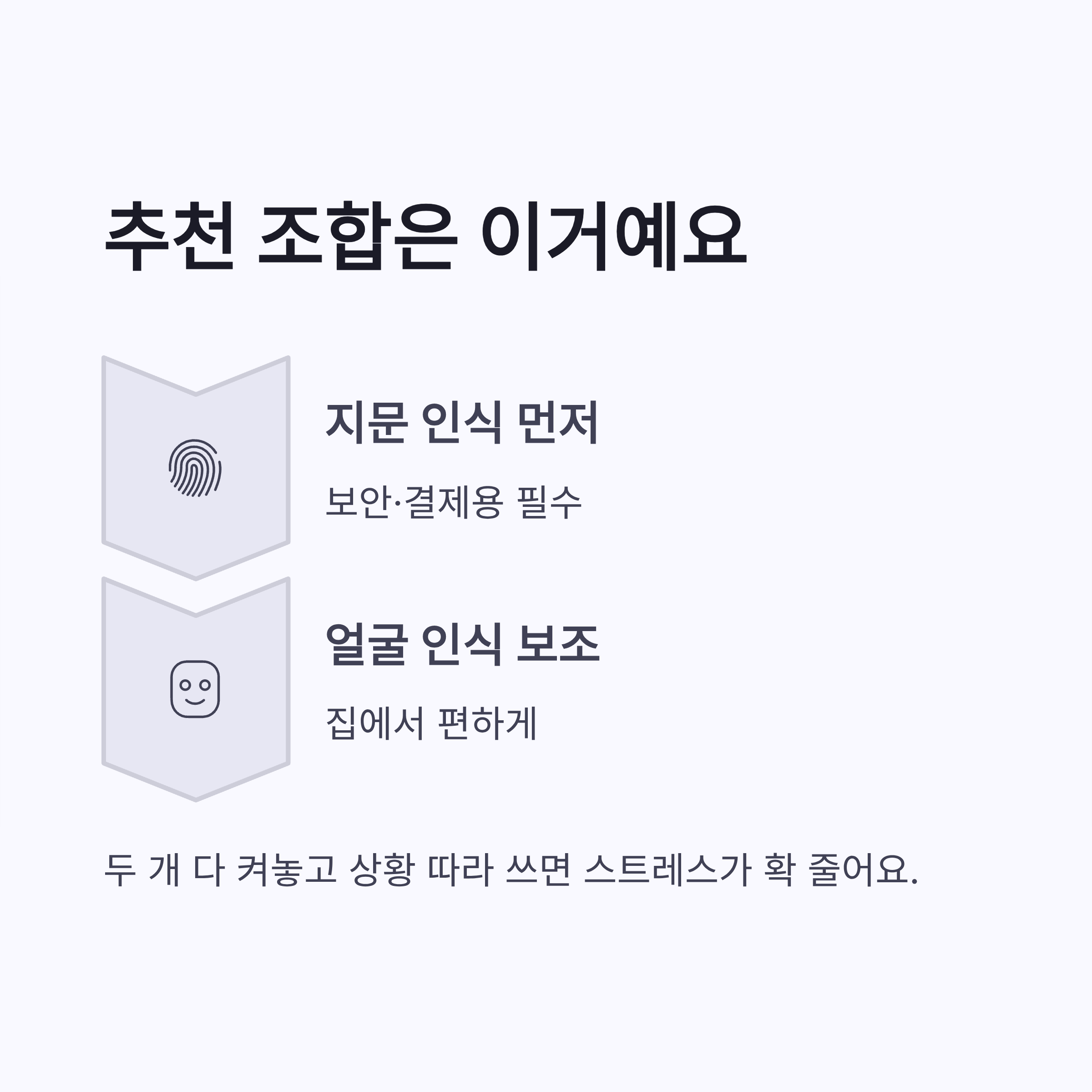 삼성 쪽 설명에서도 지문 인식이 얼굴 인식보다 보안 등급이 높다고 안내하고 있구요. 실제로 삼성페이, 보안 폴더 같은 기능은 지문 인증이 기본이라서 갤럭시 폴드7 생체인식 설정 시 지문은 필수 느낌이었음다.