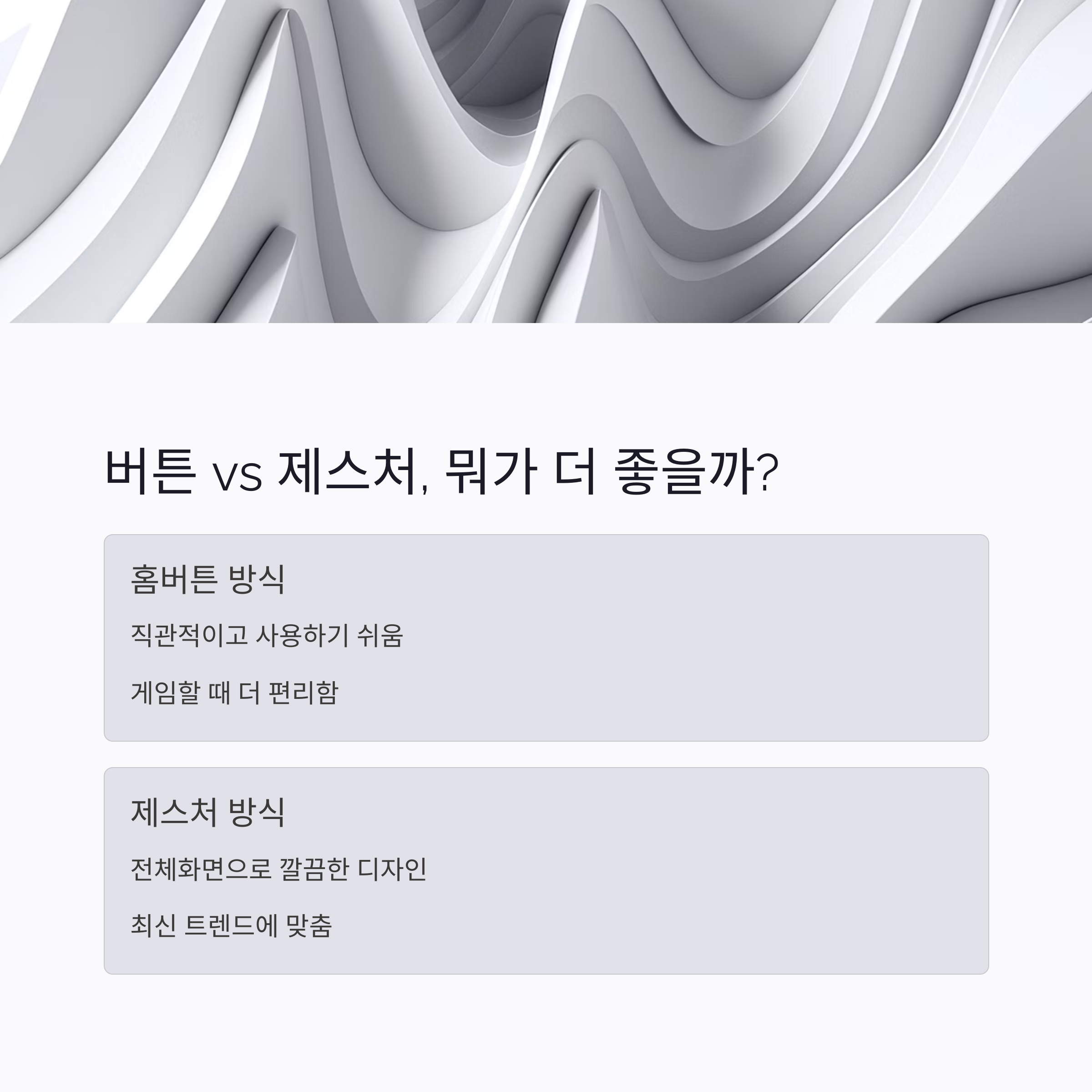 - 트렌드는 제스처지만, 버튼 방식의 안정성은 무시 못 해유~