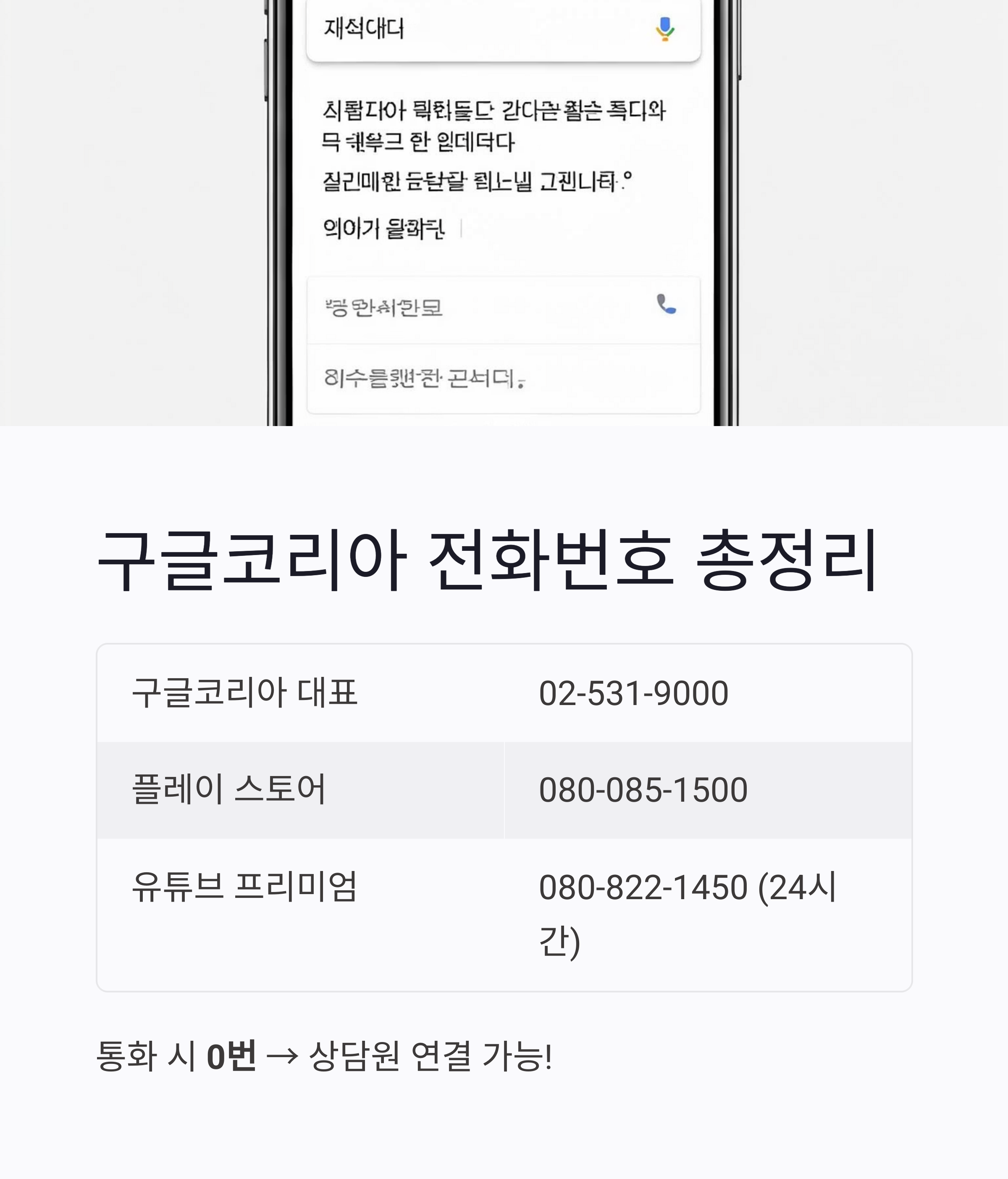 1. 구글코리아 대표 전화번호 & 서비스별 상담번호