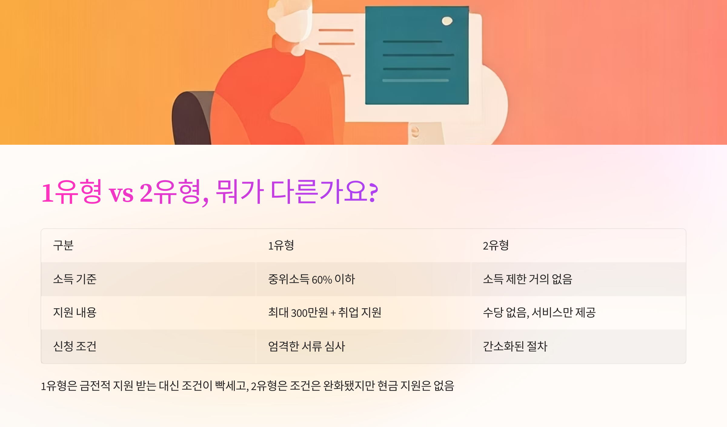 오늘은 1유형, 2유형 차이점부터 신청 방법까지, 짧고 정확하게 알려드릴게요💡