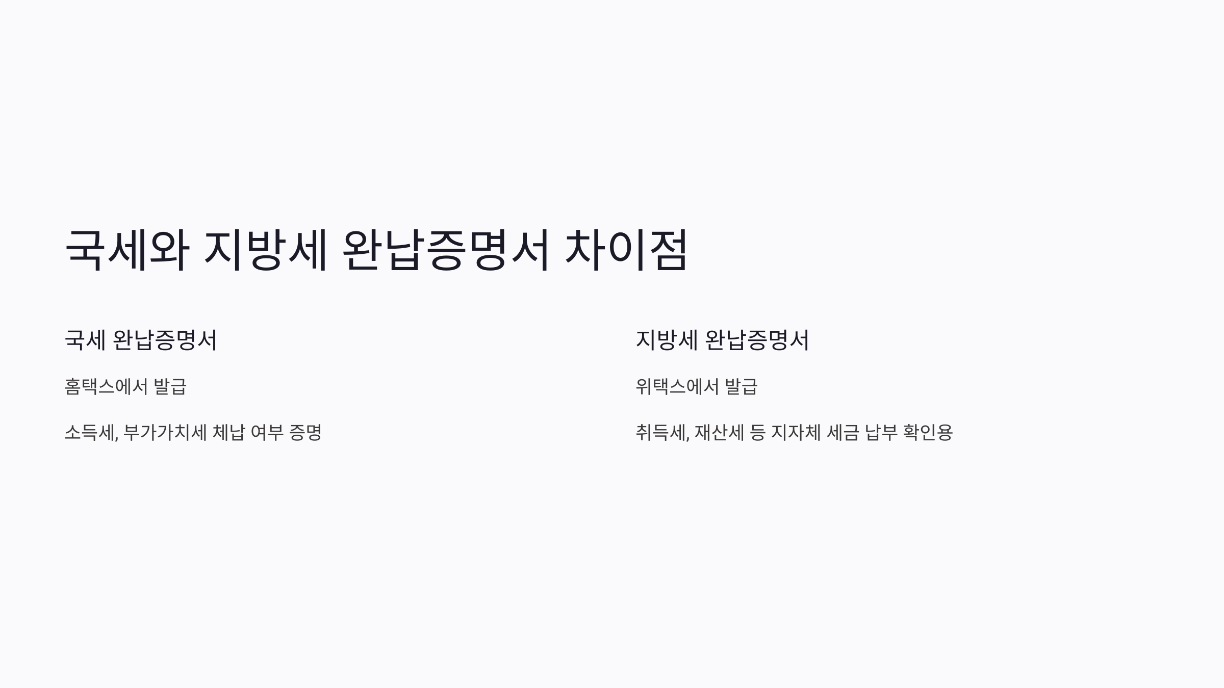국세랑 지방세 완납증명서, 뭐가 다를까?