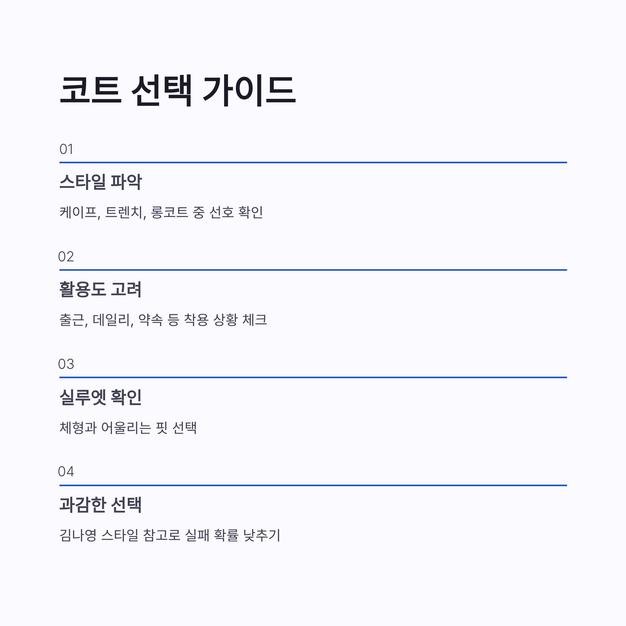 정리해보면 김나영 겨울 코트 트렌드는 유행을 쫓기보다 흐름을 만드는 쪽에 가까웠어요. 케이프코트의 귀환, 트렌치코트의 안정감, 롱코트의 존재감까지. 올겨울 뭐 살지 고민 중이라면 김나영 스타일 참고하면 실패 확률 적을 듯하구요. 저도 다음 코트는 과감하게 가볼까 고민 중입니다 ㅎㅎ 여러분은 어떤 코트가 제일 끌리시나요?