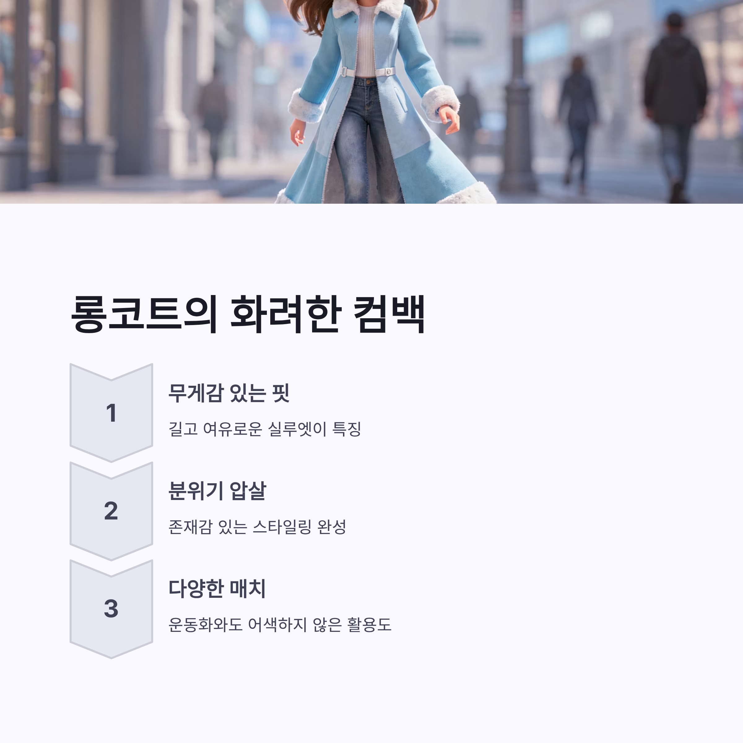이런 조합이 2026년까지 이어질 것 같았어요. 연관 키워드로는 클래식코트, 체크코트가 자연스럽게 떠오르구요.