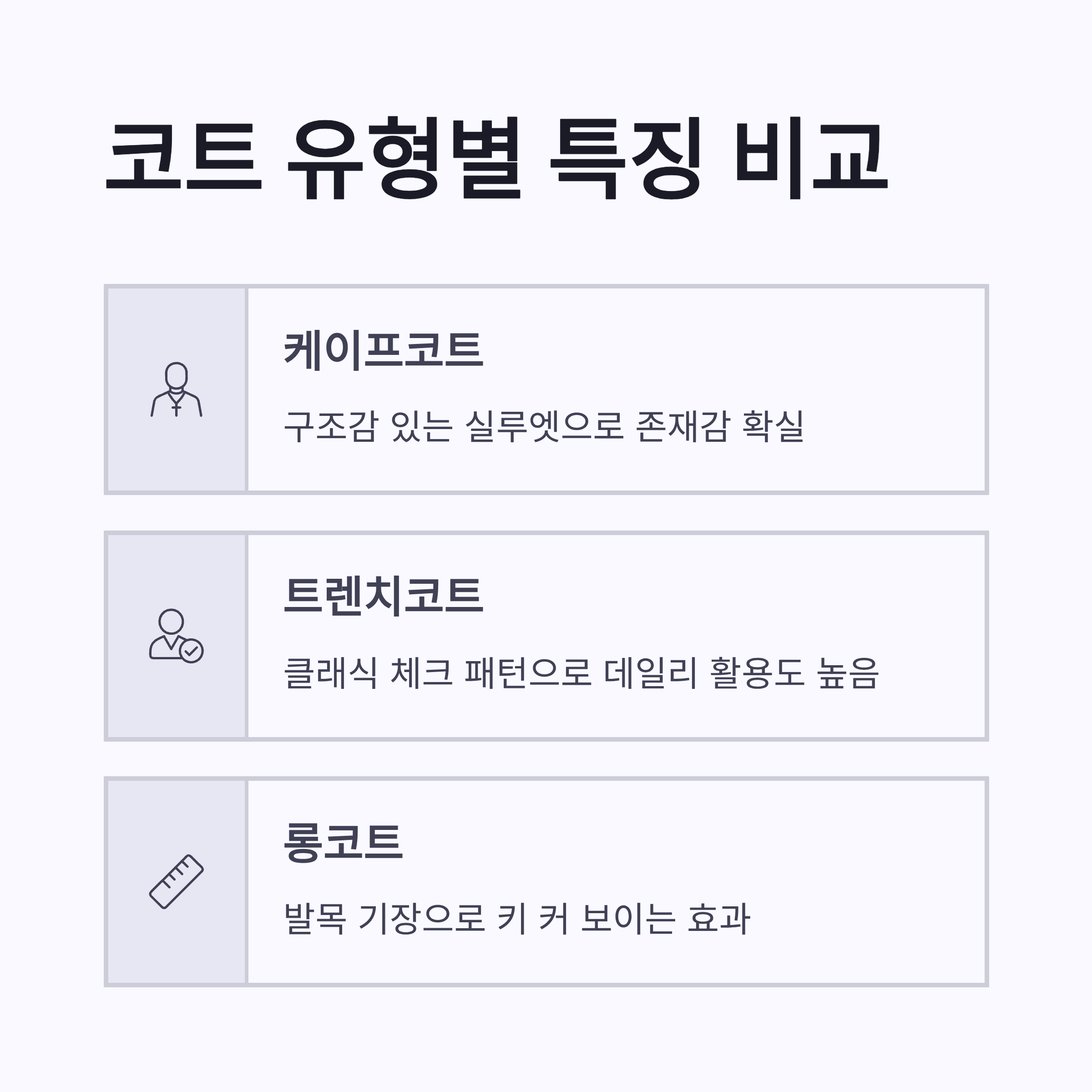 | 코트 유형 | 특징 | 체감 느낌 |