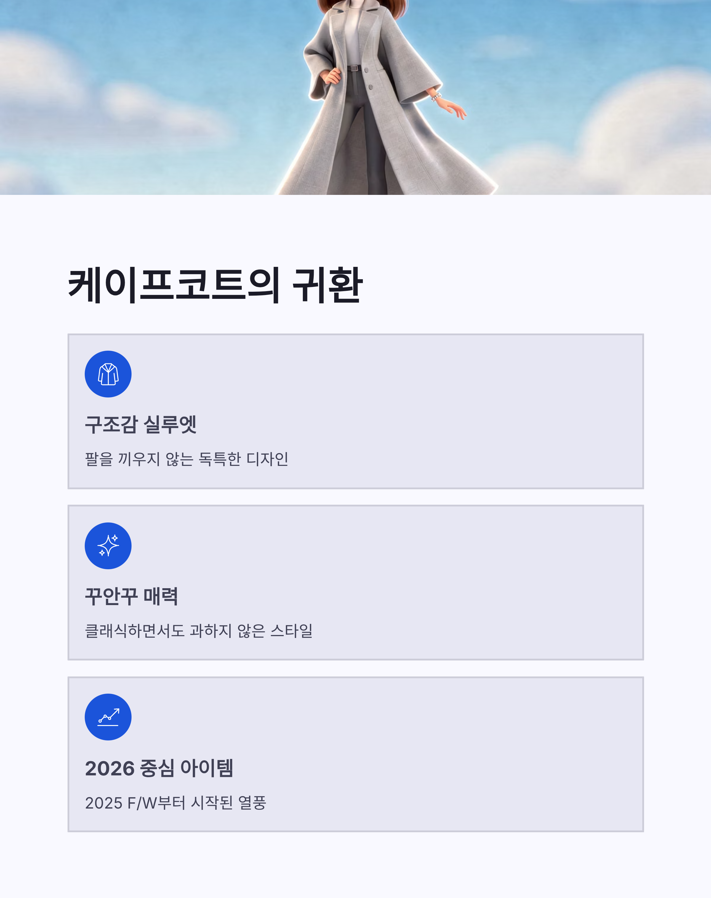 | 케이프코트 | 구조감 있는 실루엣 | 존재감 확실 |