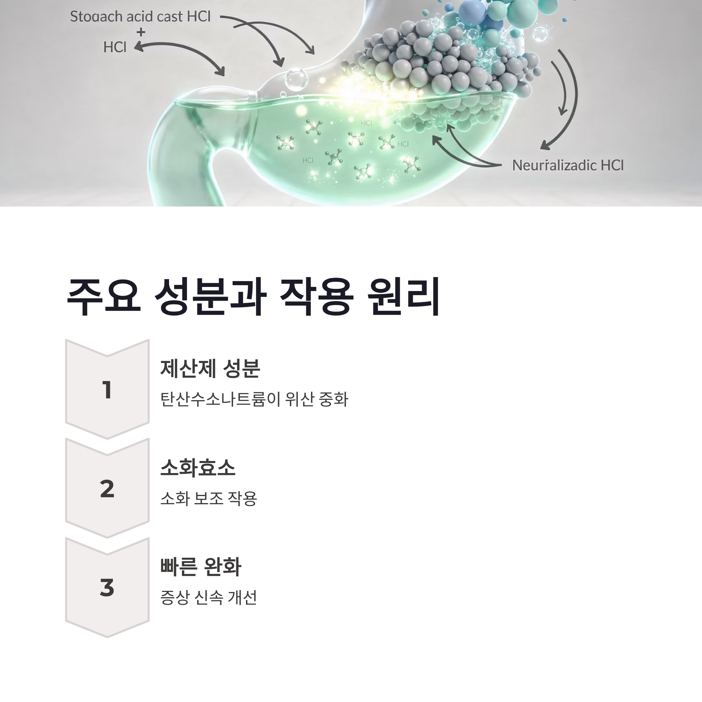 | 주요 역할 | 위산 중화, 소화 보조 |