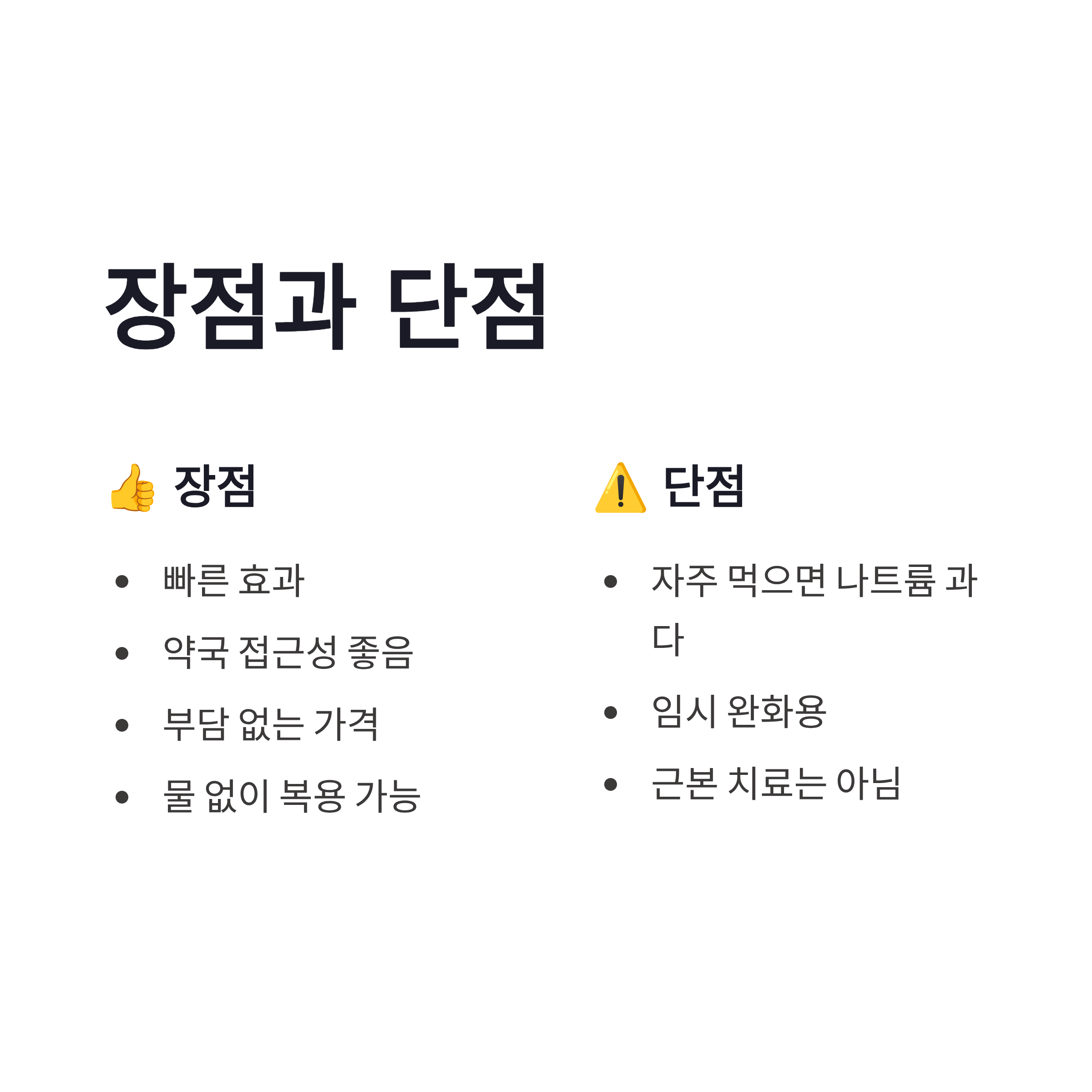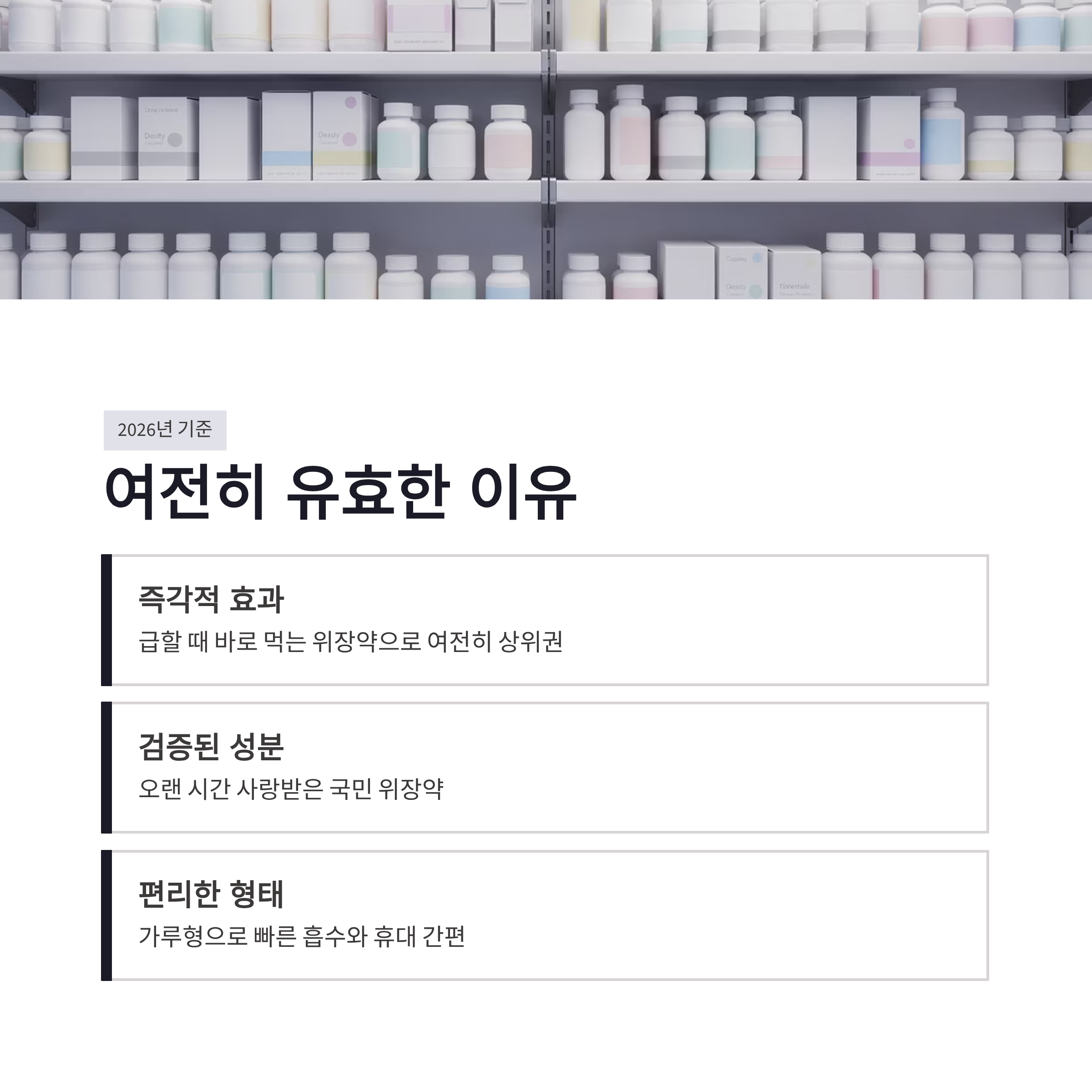 2026년 기준으로 봐도 노루모산은 여전히 즉각적인 위장약으로는 상위권이라고 느껴졌습니다. 장점은 빠른 효과, 약국 접근성, 부담 없는 가격. 단점은 너무 자주 먹으면 나트륨 섭취가 늘 수 있다는 점 정도였어요. 위염이 자주 반복되는 분들이라면 임시방편으로만 쓰는 게 좋고, 계속 먹게 된다면 병원 진료가 맞는 선택이겠죠. 요즘은 위장약도 종류가 많아졌지만, 급할 때 바로 먹는 약으로는 노루모산 효능이 아직도 유효하더라구요.