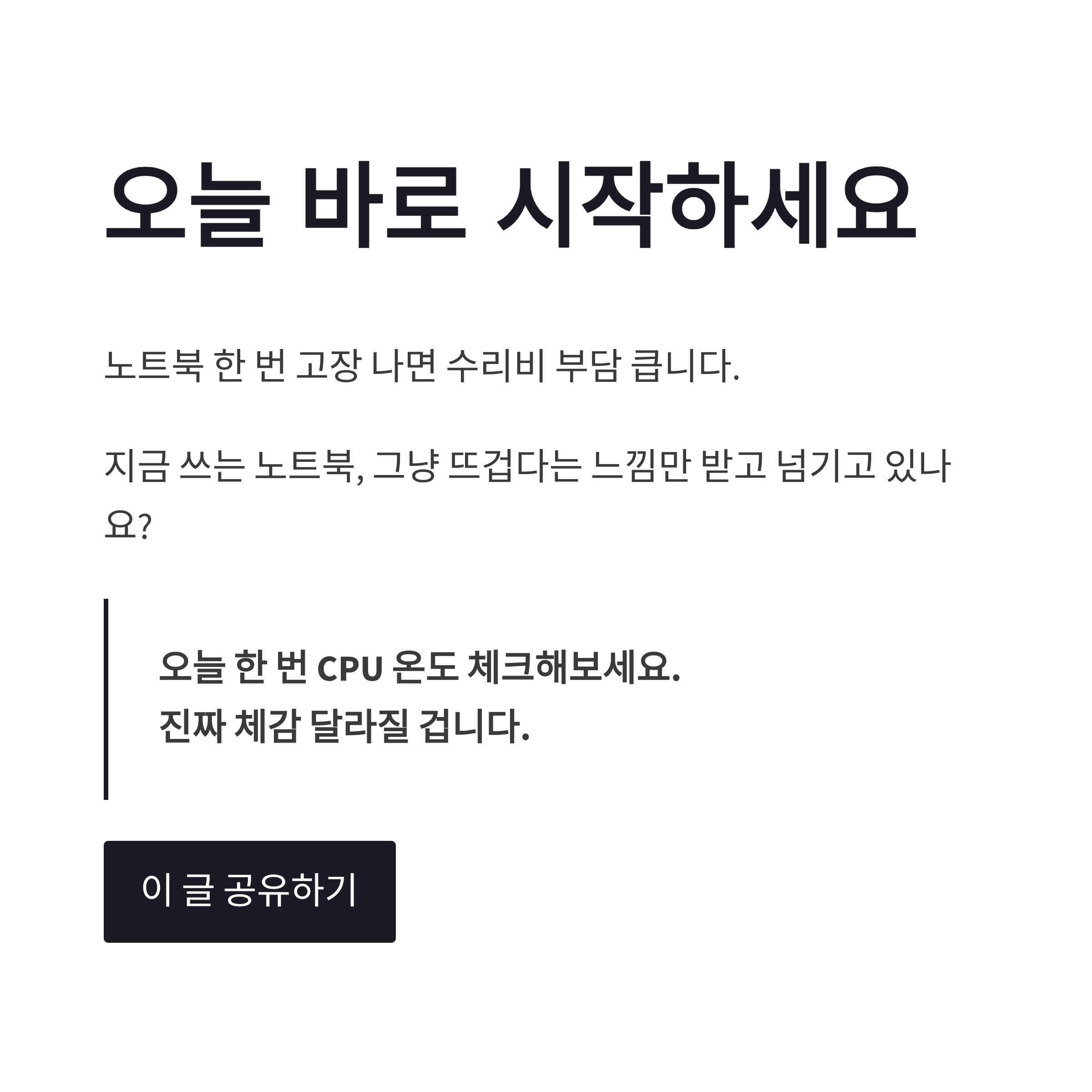 결론은 이겁니다. 노트북 CPU 온도 측정 → 원인 확인 → 필요한 조치만 선택.