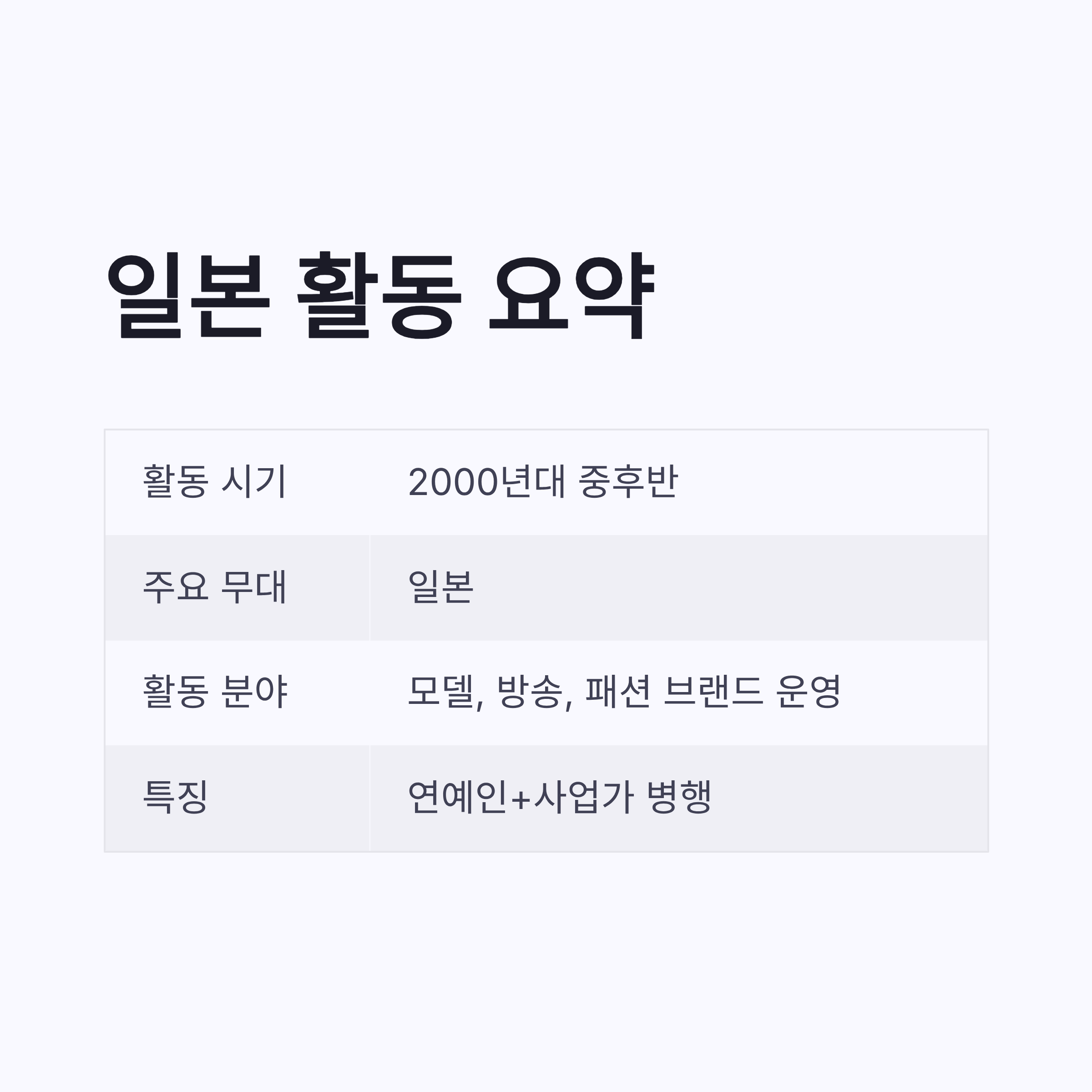 | 활동 분야 | 모델, 방송, 패션 브랜드 운영 |