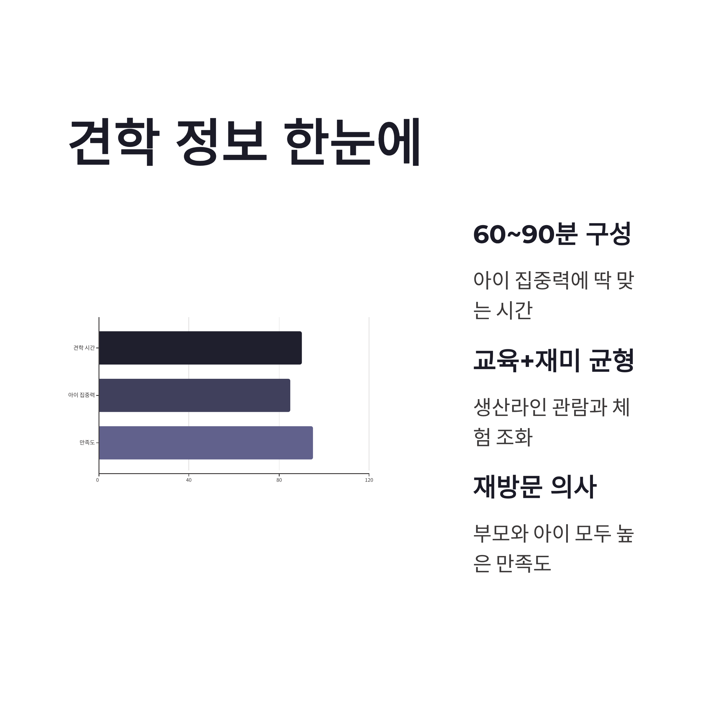| 견학 시간 | 약 60~90분 | 아이 집중력 딱 맞음 |
