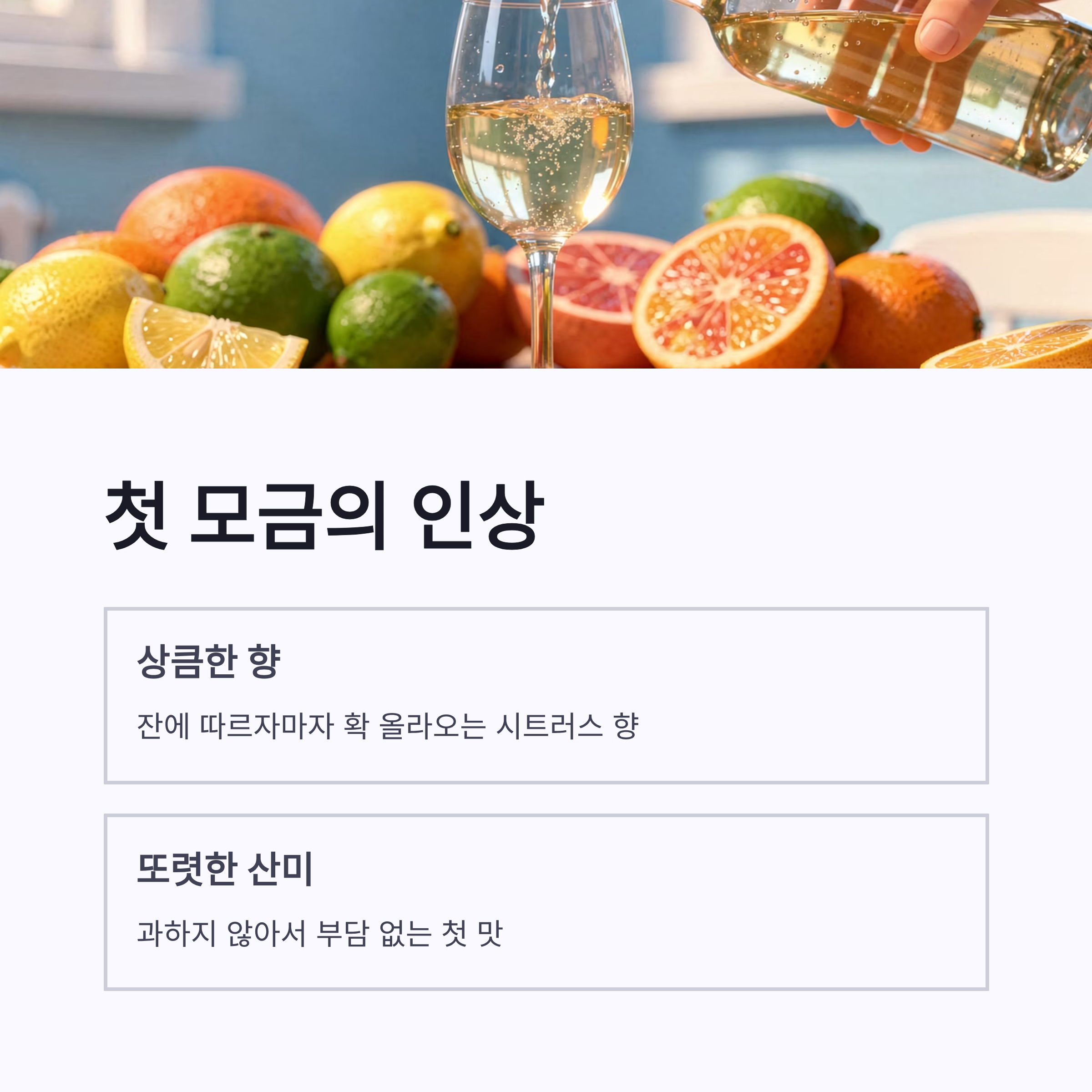 | 맛 | 산뜻한 산미, 깔끔한 피니시 |