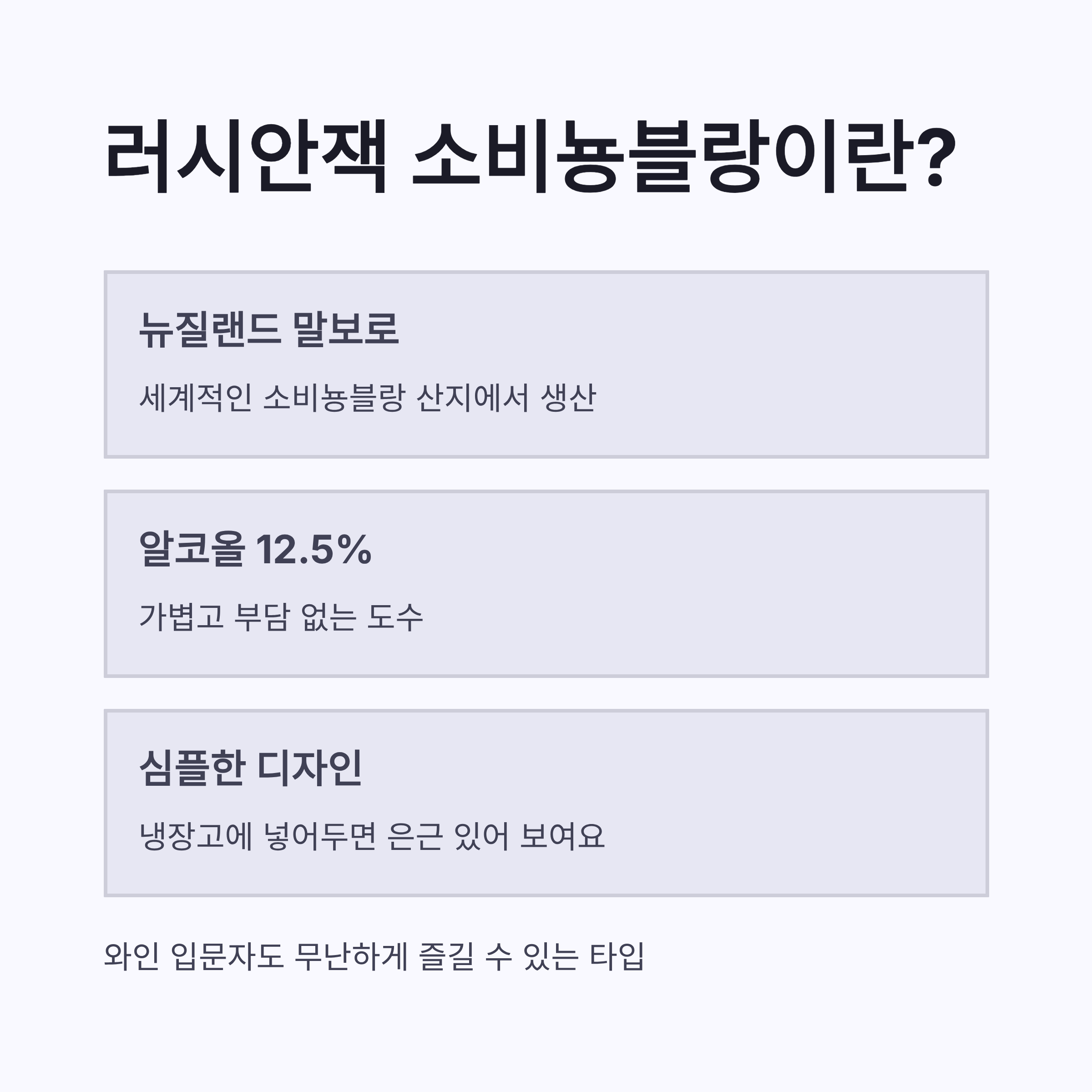 요즘 SNS 보다 보면 러시안잭 소비뇽블랑 이야기가 진짜 자주 보이더라구요. 저도 궁금해서 직접 사서 마셔봤는데요, 한마디로 말하면 “부담 없이 꺼내 마시기 좋은 뉴질랜드 화이트와인” 느낌이었어요. 러시안잭 소비뇽블랑은 뉴질랜드 말보로 지역에서 생산된 소비뇽블랑 품종이고, 알코올 도수는 약 12.5% 정도로 가볍습니다. 병 디자인도 심플해서 냉장고에 넣어두면 은근히 있어 보이더라구요 ㅎㅎ 처음 와인 입문할 때도 무난한 타입이라는 생각이 들었어요.