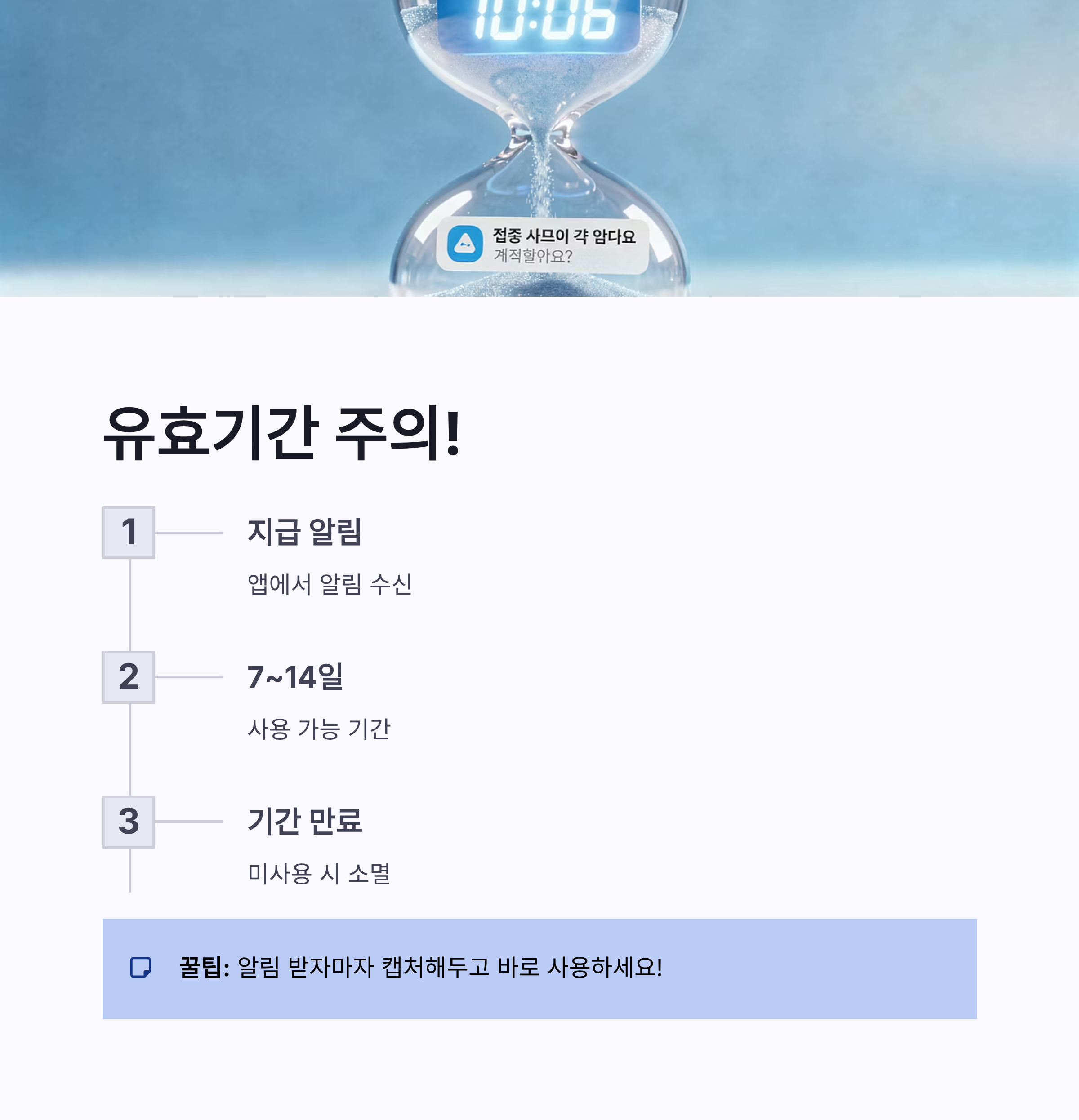 * 지급 기준이 공개 안 됨 * 유효기간 짧음 (보통 7~14일) * 못 받는 사람은 계속 못 받음…ㅠㅠ