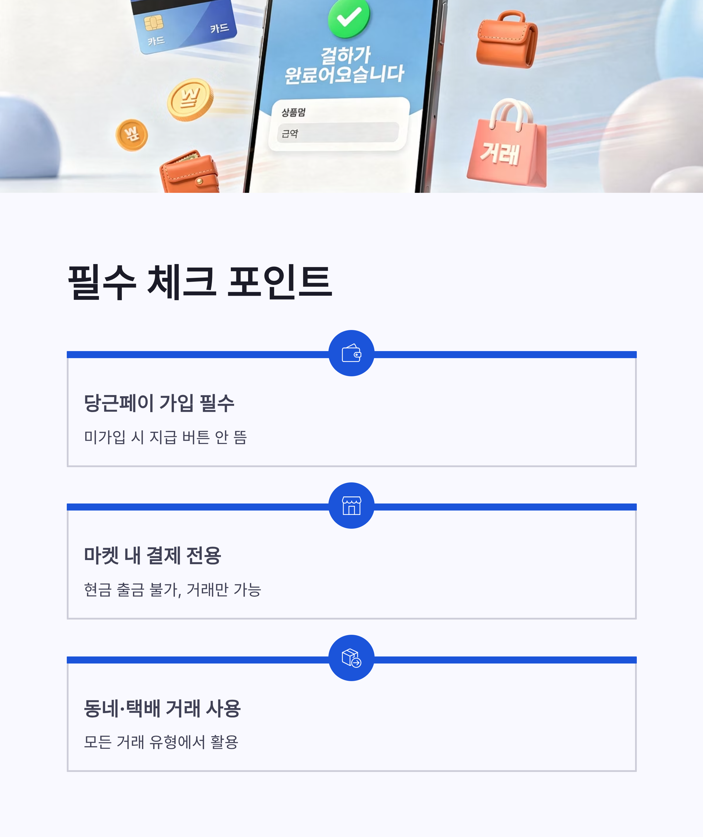 * 별도 신청 없이 지급 * 당근페이 바로 사용 가능 * 중고거래 부담 줄어듦