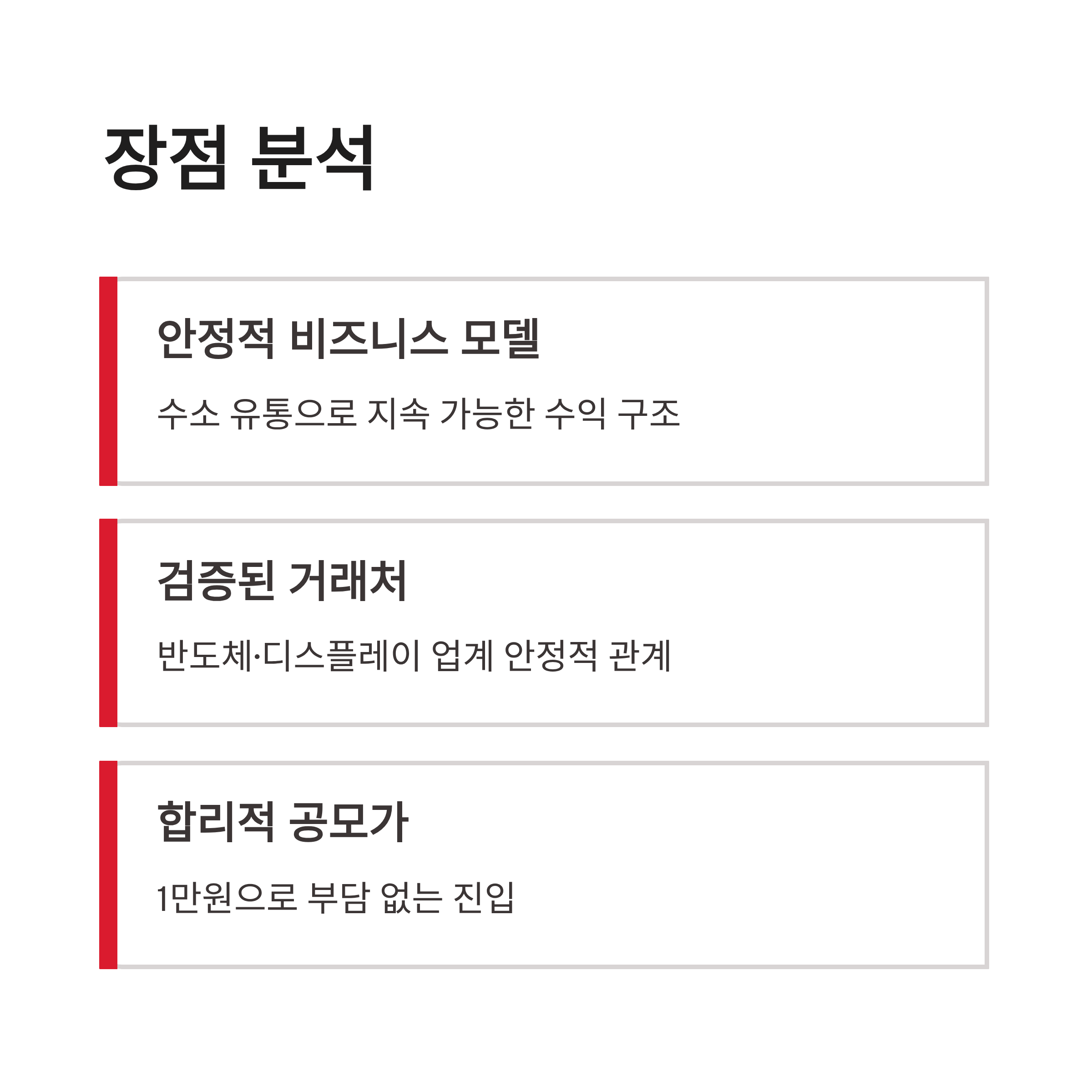 덕양에너젠 공모주를 보면서 느낀 장점은 명확했어요. 수소 ‘생산’이 아니라 ‘유통’이라는 점, 그리고 이미 거래처가 안정적으로 깔려 있다는 점이요. 반도체 쪽은 수요 변동이 있어도 완전히 끊기진 않거든요. 반대로 단점도 있습니다. 수소 관련주 특성상 단기 테마로 과열되긴 애매하고, 상장 초반에 막 폭발하는 스타일은 아닐 수 있어요. 그래서 덕양에너젠 공모주는 단타보다는 흐름 보는 분들한테 더 맞을 수도 있겠다 싶었습니다.