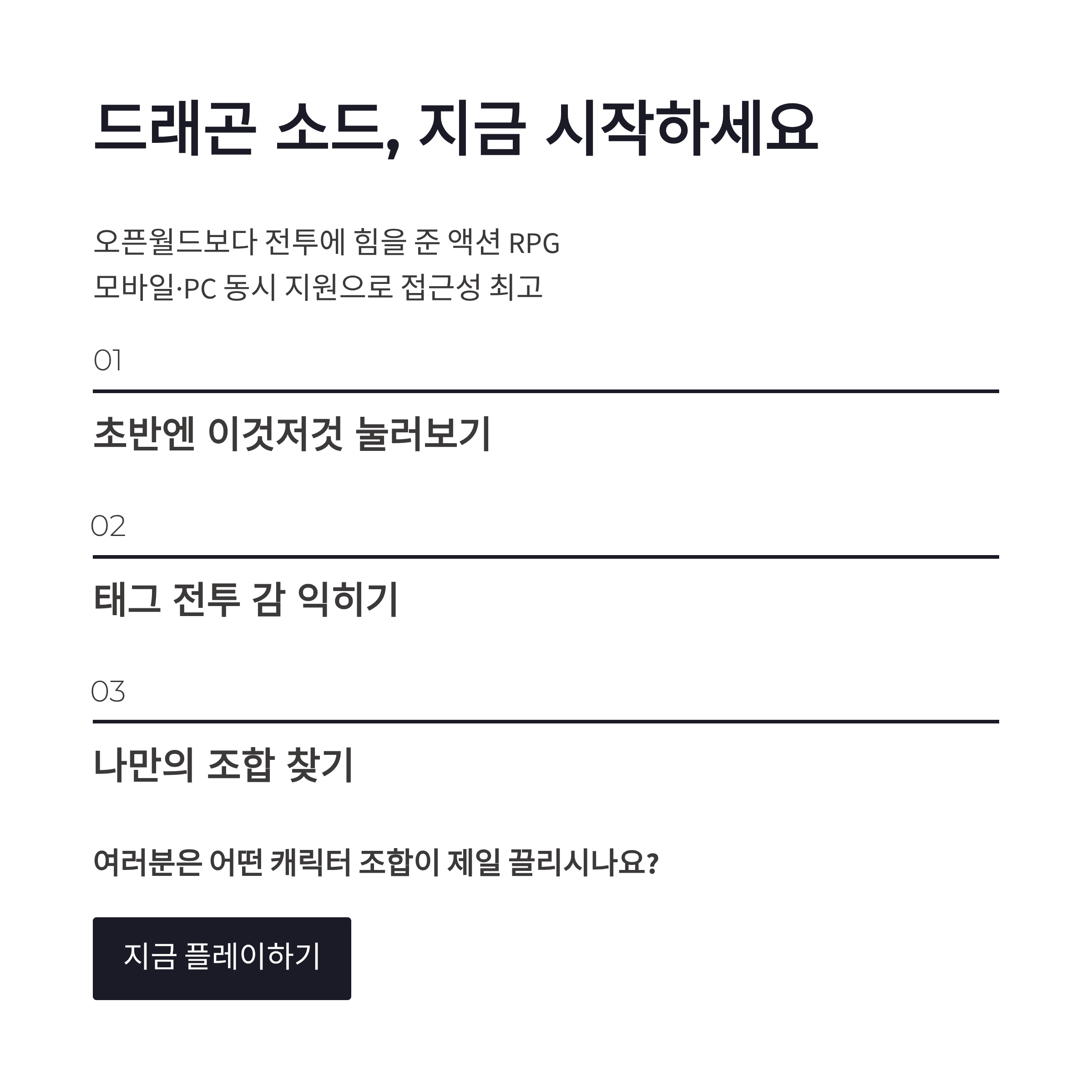 정리해보면 드래곤 소드는 오픈월드라는 껍데기보다 전투 자체에 힘을 준 액션 RPG였습니다. 모바일·PC 동시 지원이라 접근성도 괜찮고, 태그 전투랑 카르마 시스템 덕분에 반복 플레이도 덜 지루했구요. 가볍게 자동 돌리는 게임 찾는 분들보다는, 손으로 직접 컨트롤하는 재미 좋아하는 분들께 더 잘 맞을 것 같더라구요. 오늘 막 시작한 분들이라면 초반엔 이것저것 눌러보면서 감 익히는 거 추천합니다. 여러분은 드래곤 소드 전투 스타일, 어떤 캐릭터 조합이 제일 끌리시나요?