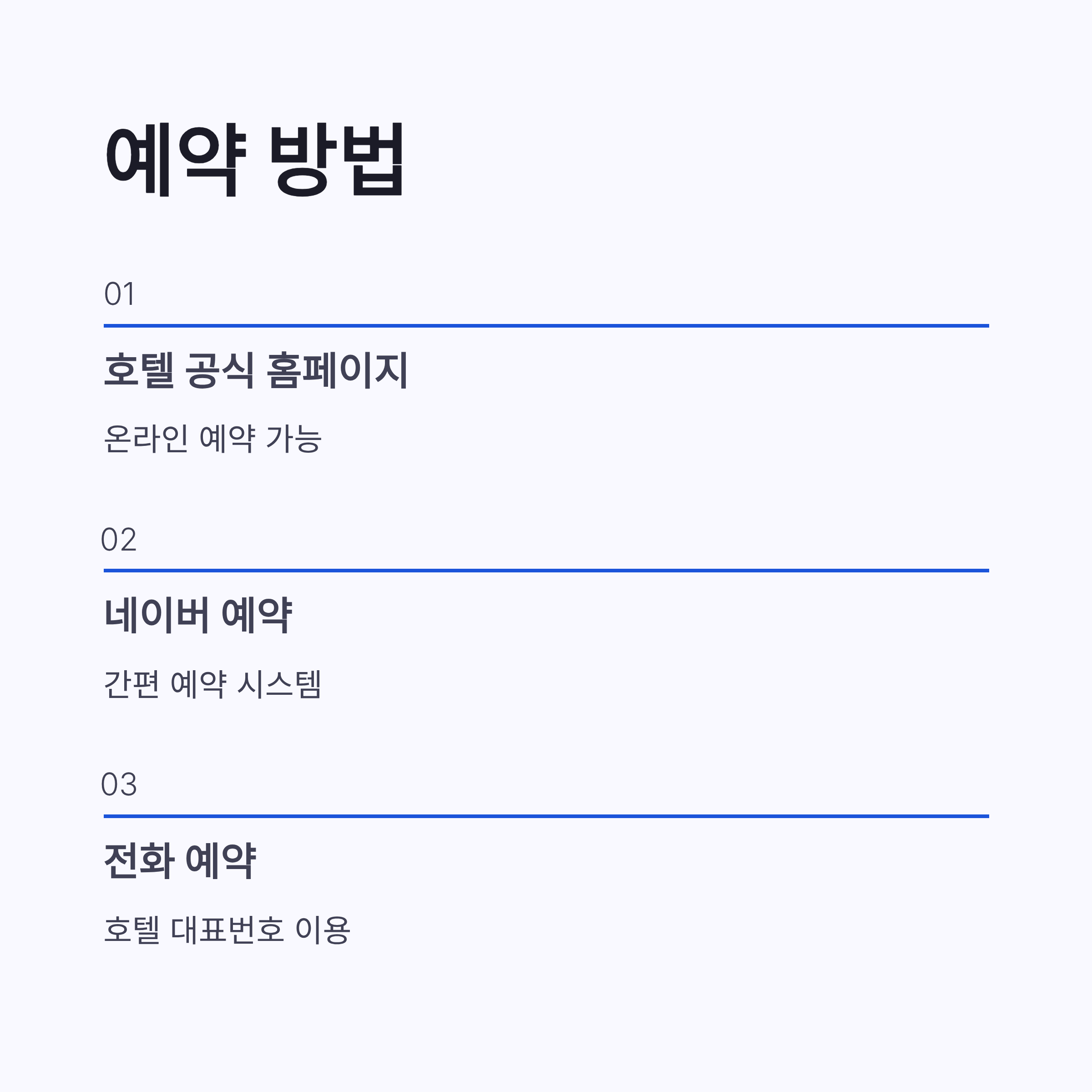 * 호텔 공식 홈페이지 * 네이버 예약 * 호텔 대표번호 전화 예약
