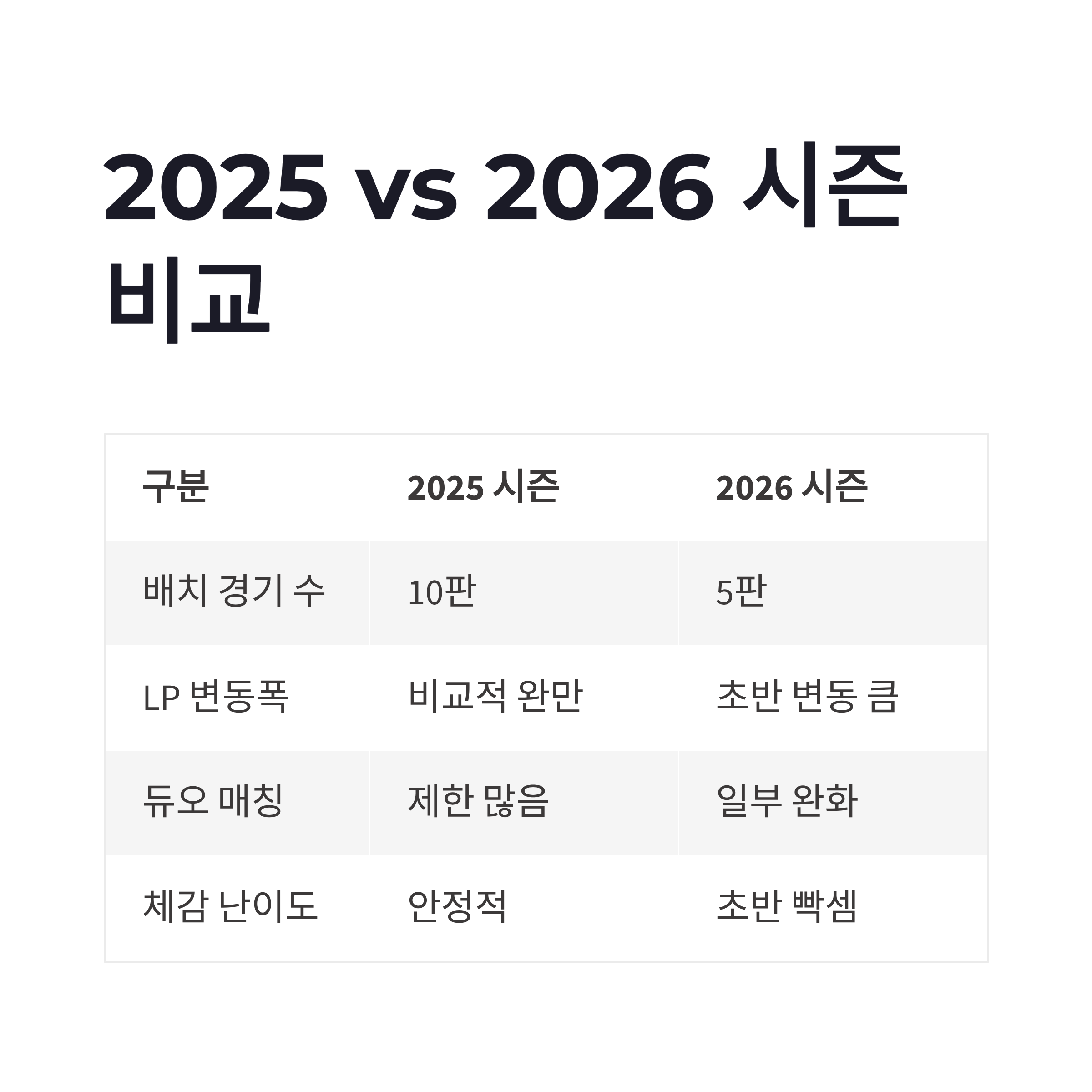 | 구분 | 2025 시즌 | 2026 시즌 |