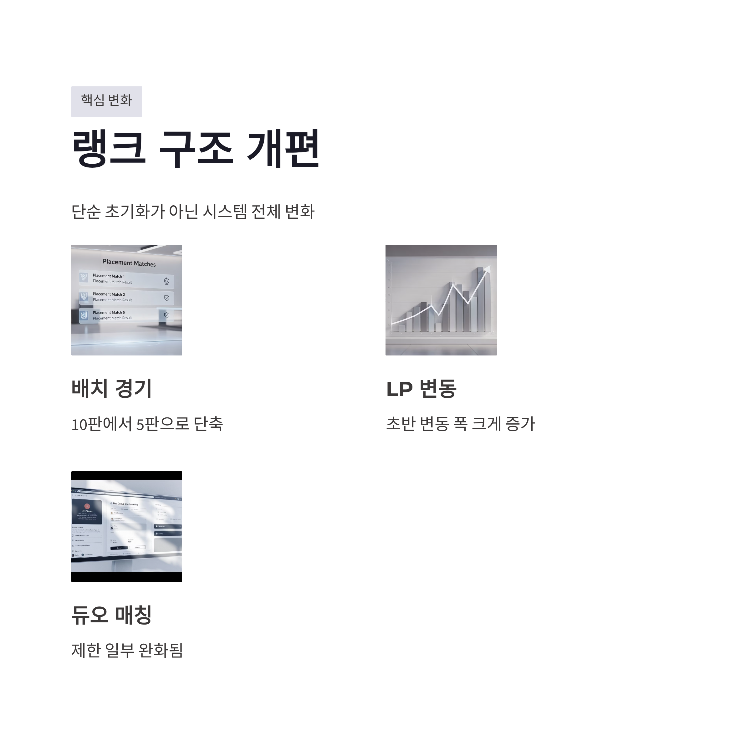 롤 시즌 시작일 2026의 핵심 변화 중 하나는 랭크 구조 개편이었어요. 단순 초기화가 아니라, 점수 오르는 속도랑 MMR 반영 방식이 좀 달라졌습니다.