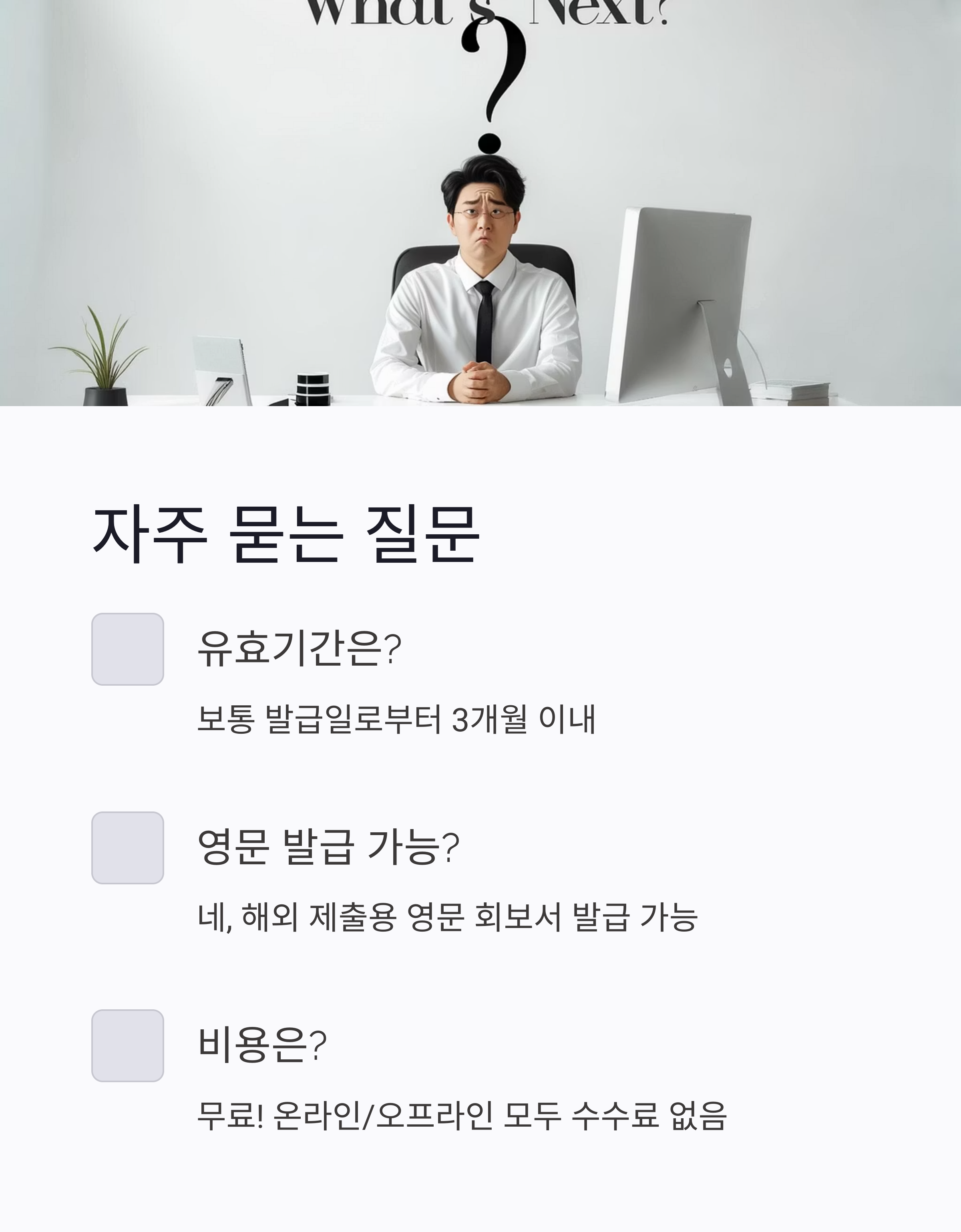 A. 무료입니다. 온라인/오프라인 모두 발급 수수료 없습니다!