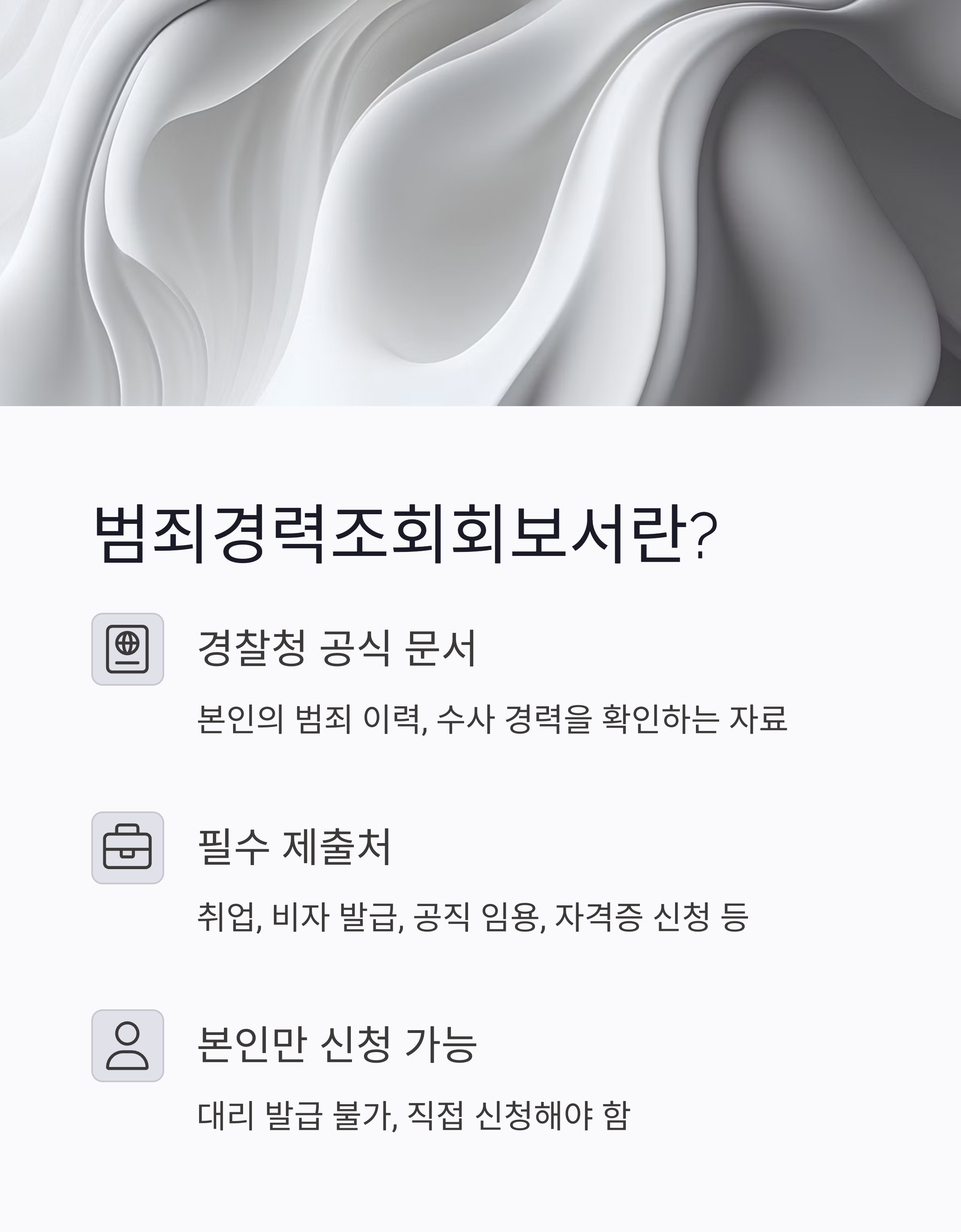 요즘 구직, 해외 비자, 자격증 신청할 때 꼭 요청받는 서류 중 하나가 바로 ‘범죄경력조회회보서’입니다.