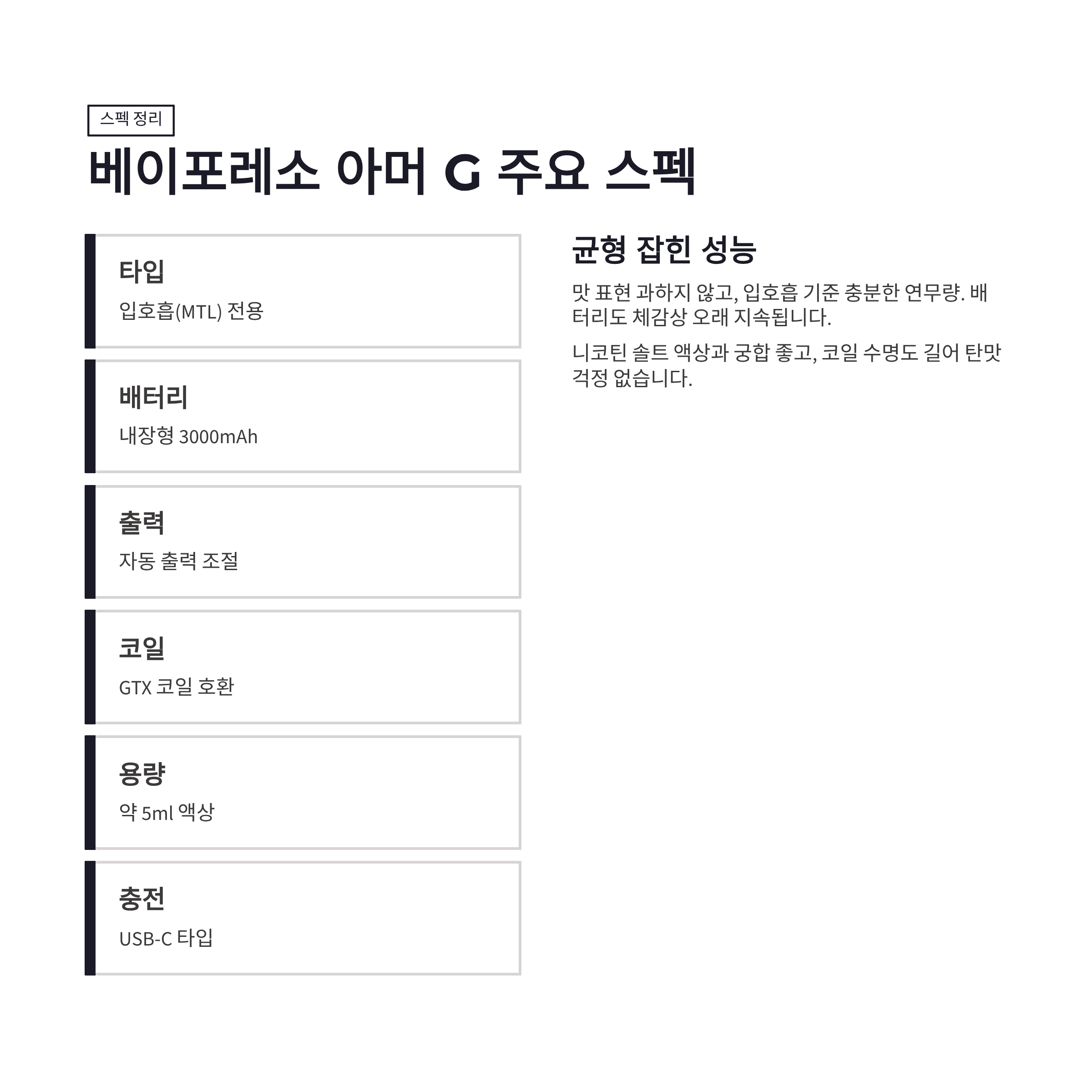 베이포레소 아머 G 사용감과 스펙 정리