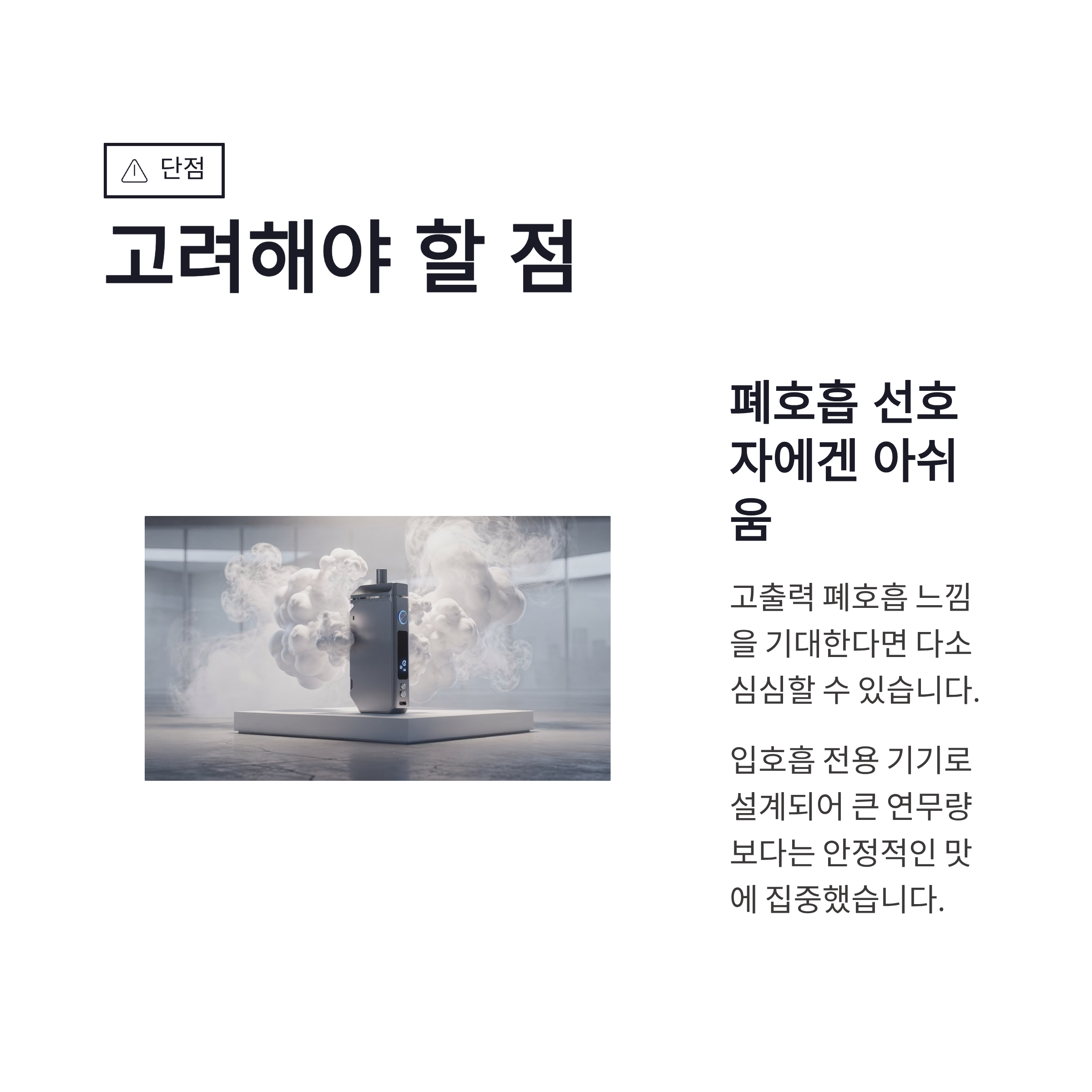 정리해보면 베이포레소 아머 G 킷은 입호흡 전자담배 찾는 분들한테 무난하면서도 만족도 높은 선택지였어요. 배터리 걱정 덜고, 액상 맛 안정적으로 즐기고 싶은 분들, 그리고 너무 복잡한 설정 싫은 분들한테 잘 맞는 느낌이었구요. 저도 당분간은 이걸 메인으로 쓸 것 같네요. 입호흡 기기 고민 중이셨다면, 베이포레소 아머 G 한 번쯤은 충분히 고려해볼 만했구요.