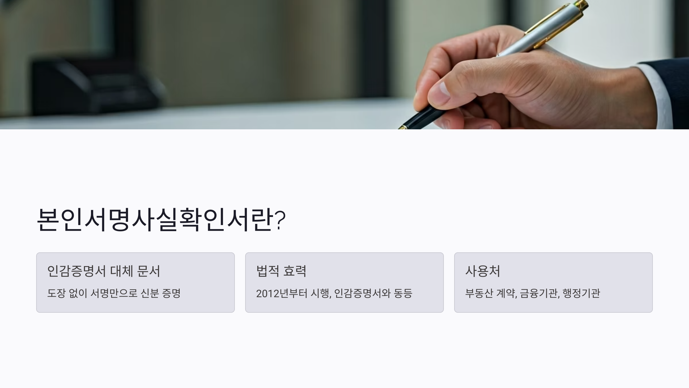 | 목적 | 인감 없이 서명으로 신분 확인 가능 |