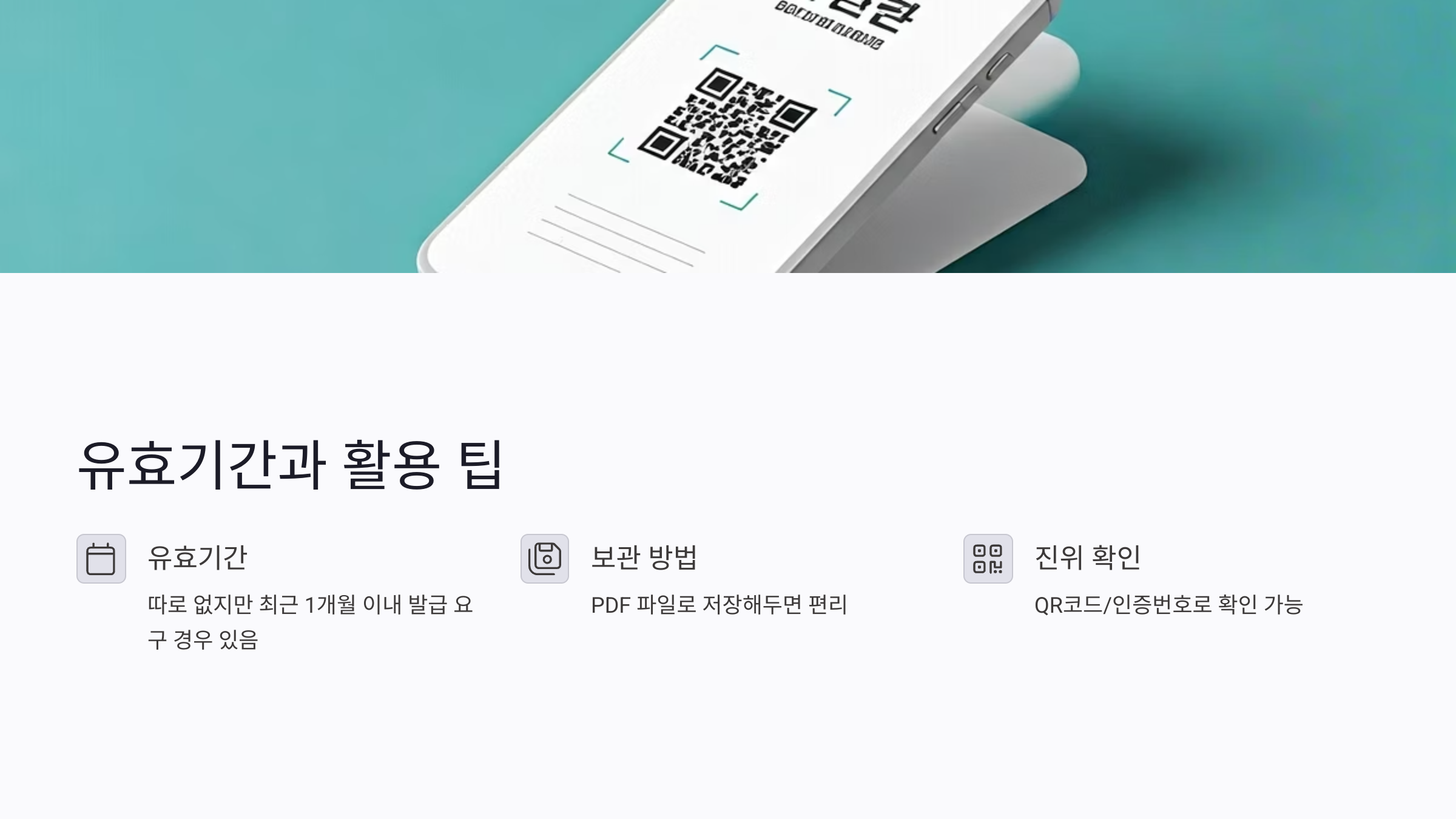 - QR코드/인증번호로 진위 확인 가능해서 요즘은 모바일 제출도 무난해요~