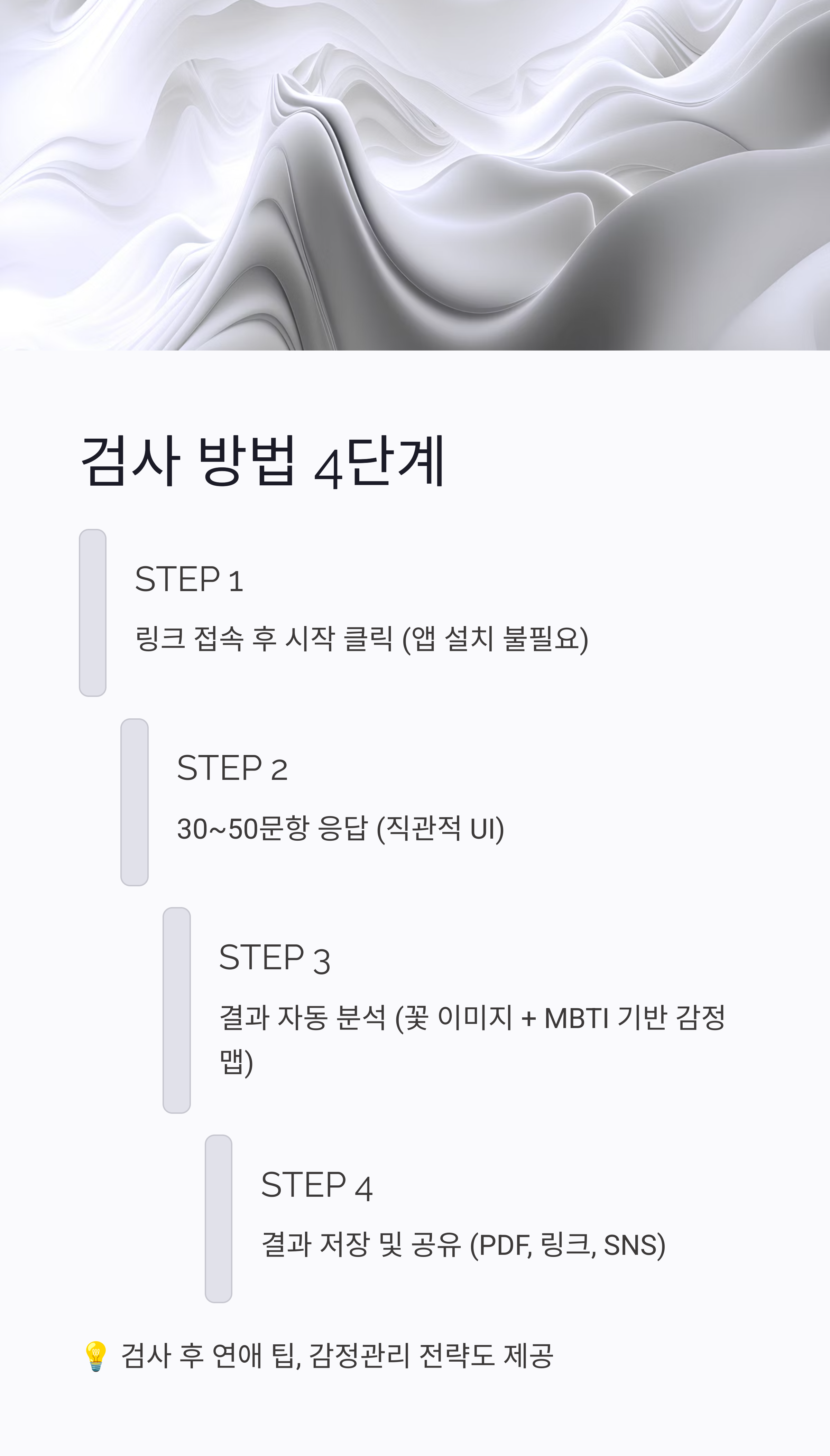 - 검사 목적: 감정 이해, 연애 성향 분석, 관계 패턴 파악