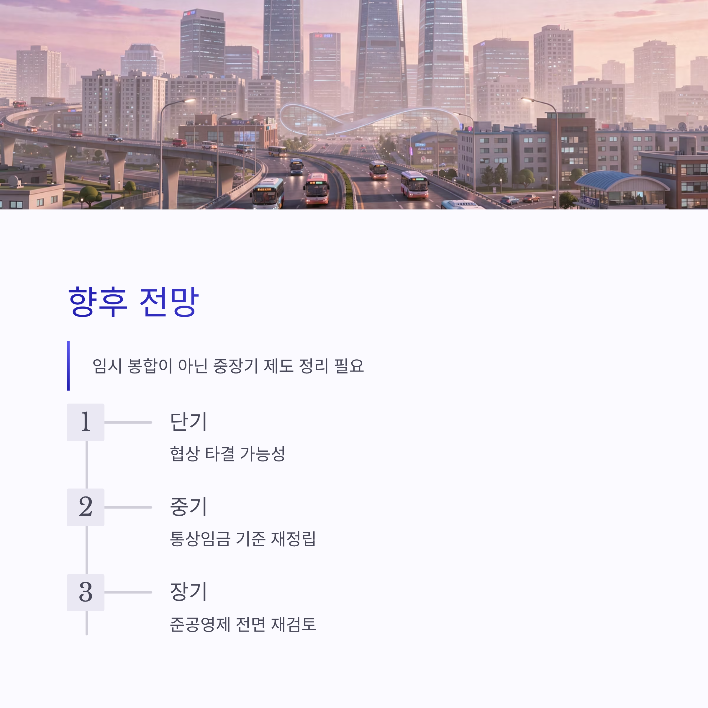 이번 서울 시내버스 파업은 단기간에 끝날 수도 있지만, 구조적인 문제는 남아 있어요. 준공영제 아래에서 임금 구조가 복잡해졌고, 통상임금 판례가 바뀌면서 다른 지역 버스 노조에도 영향을 주는 상황이거든요. 장점이라면 노동 환경 개선 논의가 본격화됐다는 점, 단점은 그 부담이 시민 불편으로 직격탄이 된다는 점이겠죠. 서울 시내버스 파업이 반복되지 않으려면 임시 봉합이 아니라 중장기적인 제도 정리가 필요해 보이긴 합니다. 말은 쉽지만… 현실은 늘 복잡하쥬.