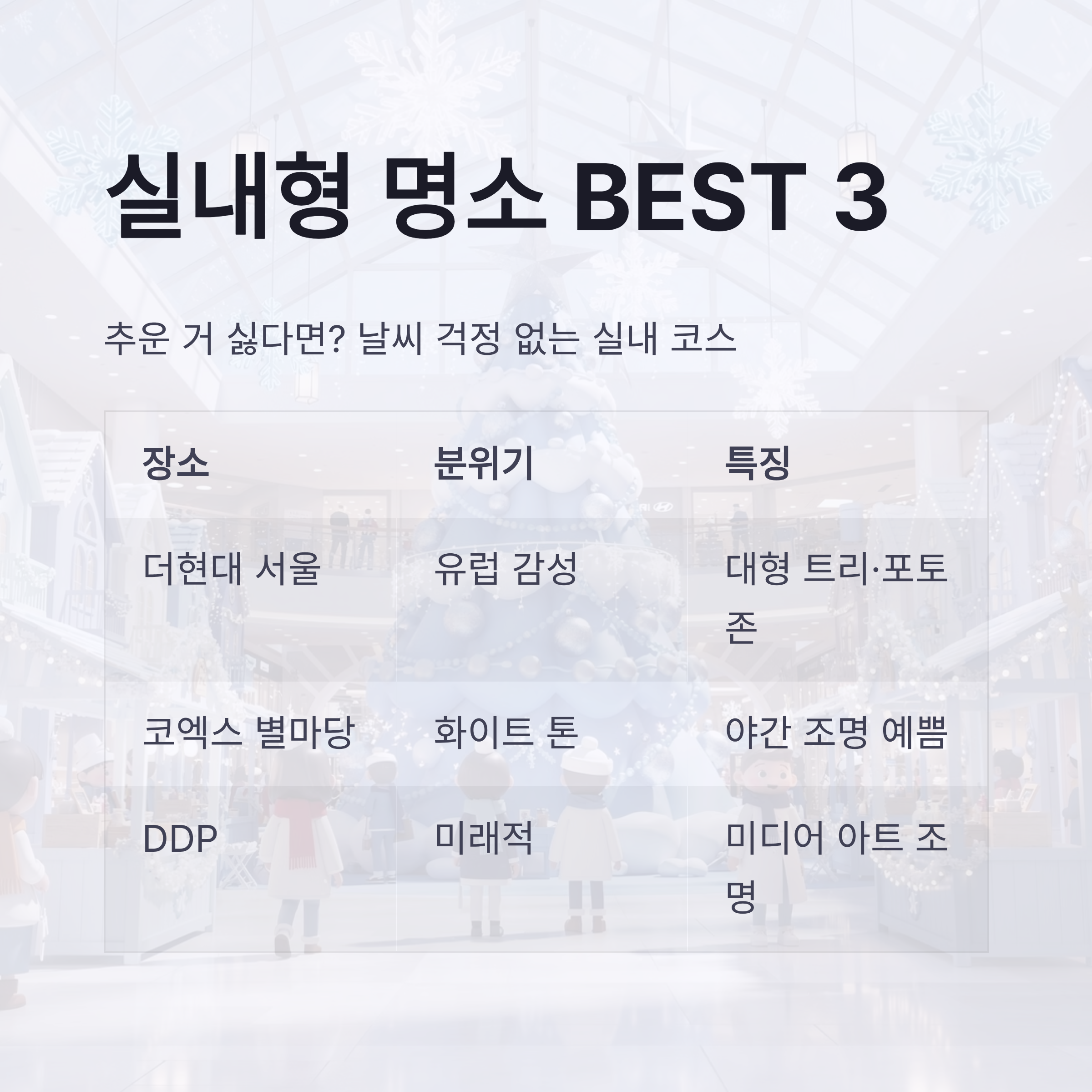 서울 크리스마스 명소 쇼핑·실내형 (더현대·코엑스·DDP)