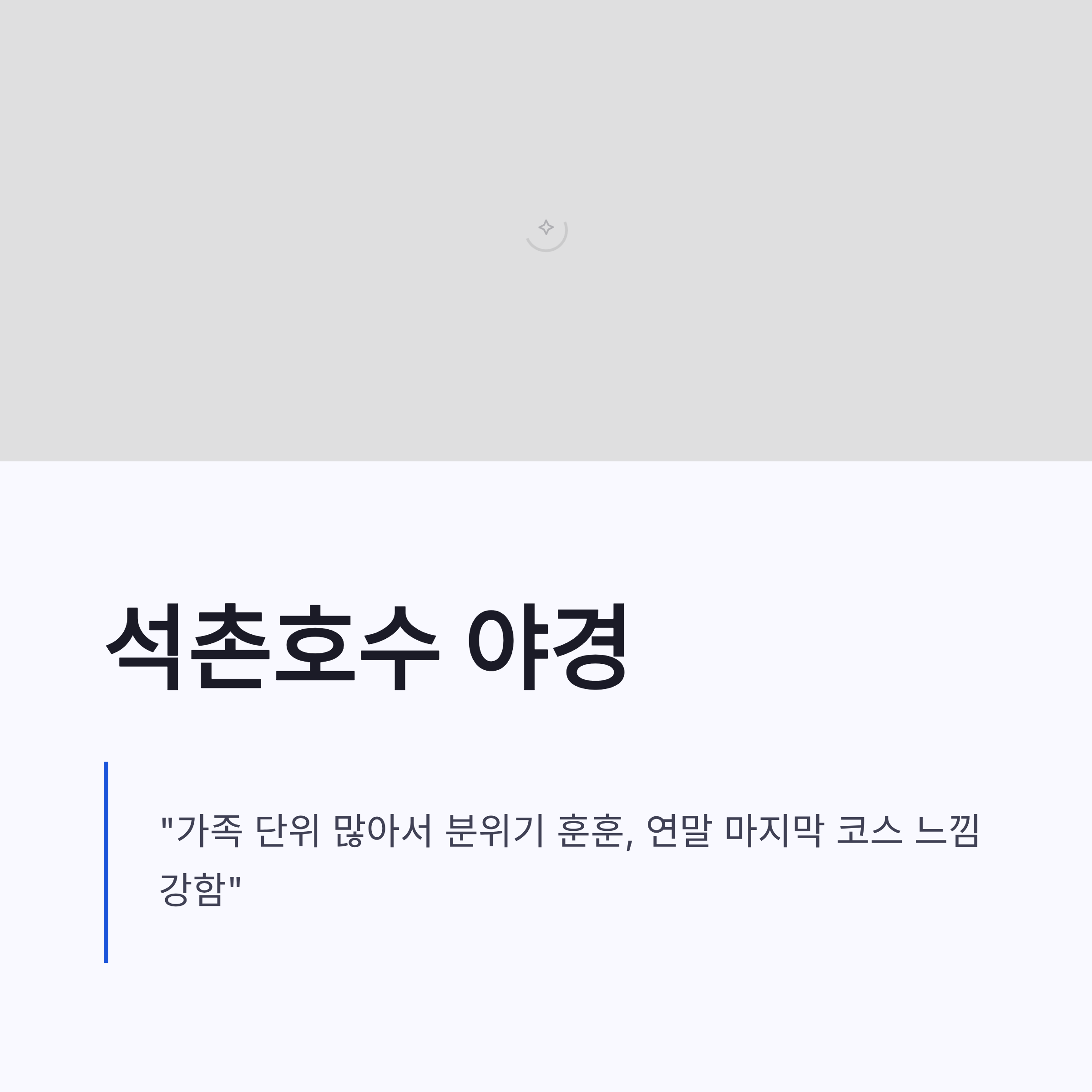 놀이 좋아하면 롯데월드 어드벤처 크리스마스 퍼레이드도 아직 살아있구요. 놀이기구 안 타도 구경만 해도 충분했어요. 바로 옆 석촌호수는 조명 반사 덕에 사진이 잘 나오더라구요. 이쪽은 가족 단위도 많아서 분위기 훈훈했구요.