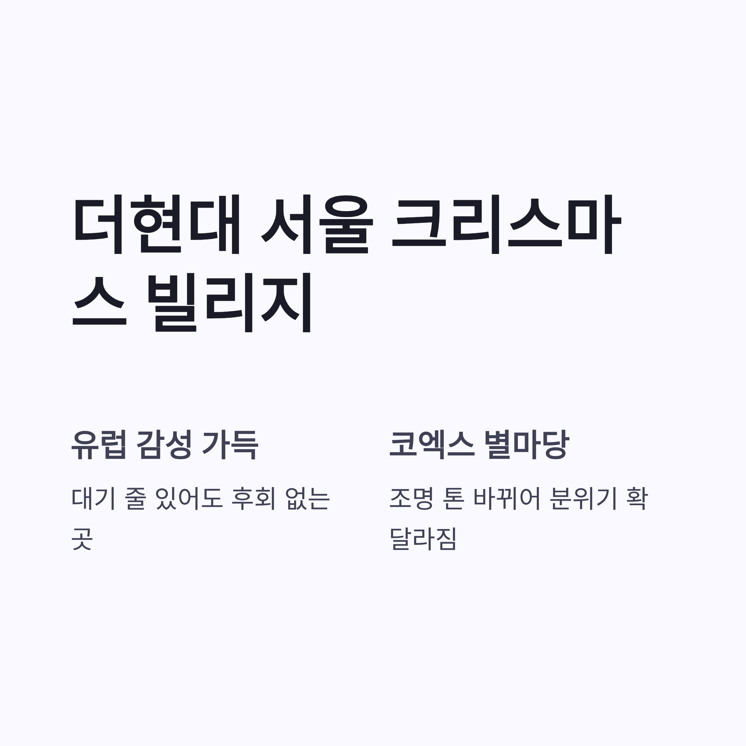 | 더현대 서울 | 유럽 감성 | 대형 트리·포토존 |