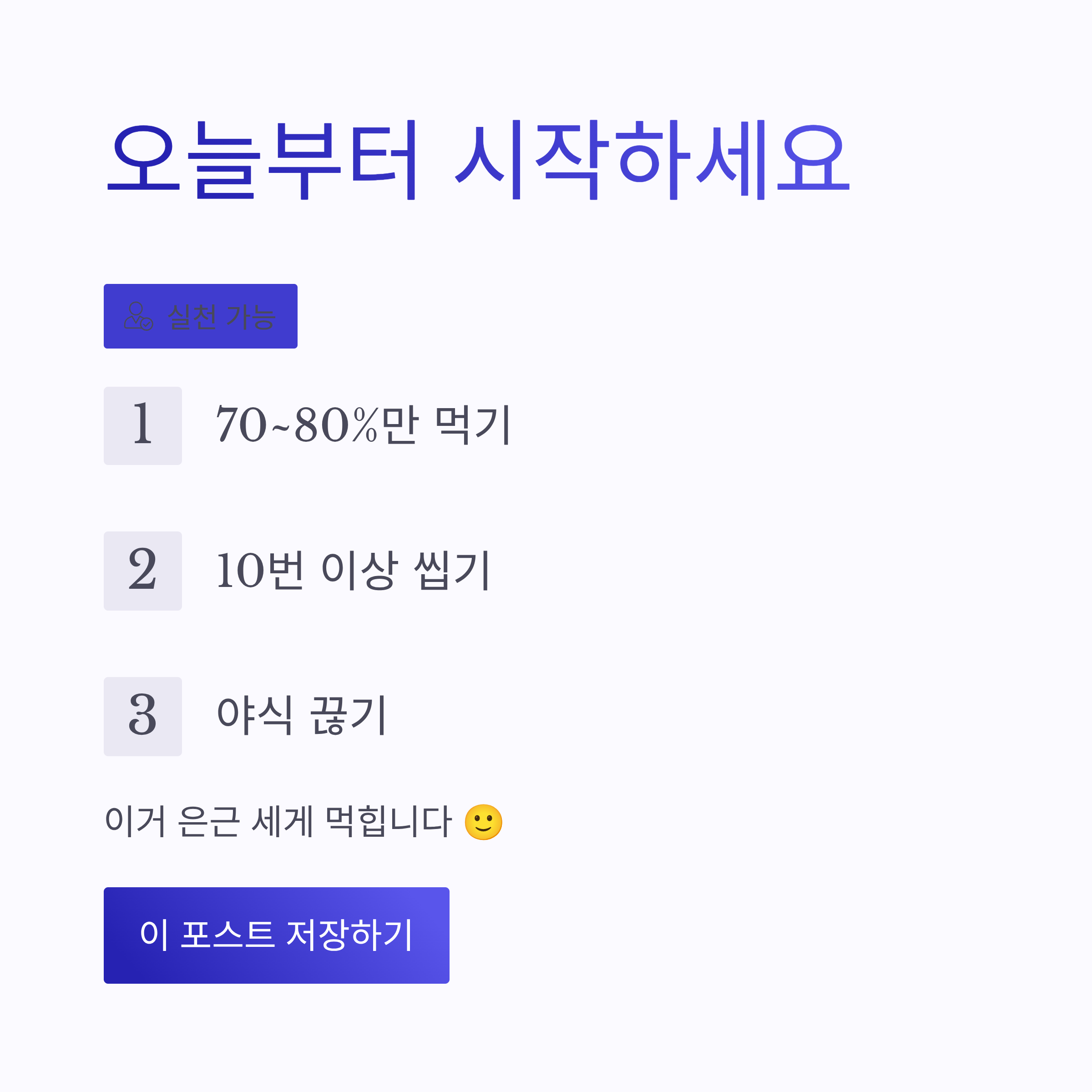 제가 체감 제일 컸던 건 “양”이랑 “속도”였어요. 배부르게 먹는 습관이 있으면 위가 진짜 못 버팁니다… 기본은 3가지만 잡아도 확 달라져요. ① 한 끼 70~80% 포만 ② 한 입 최소 10~15번 씹기 ③ 야식은 취침 3시간 전 컷. 이 3개만 지켜도 소화불량이 덜 난리납니다 ㅎㅎ