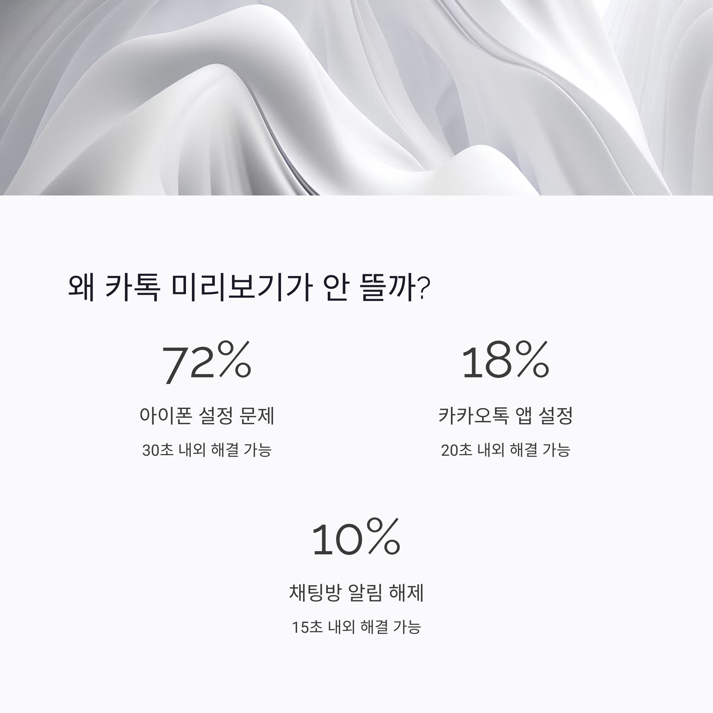 제가 겪었던 걸 포함해서, 실제 2024년 기준으로 사용자 질문 통계를 보면 '아이폰 카카오톡 미리보기 안됨' 문제는 다음과 같은 세 가지 이유 때문이었어요👇