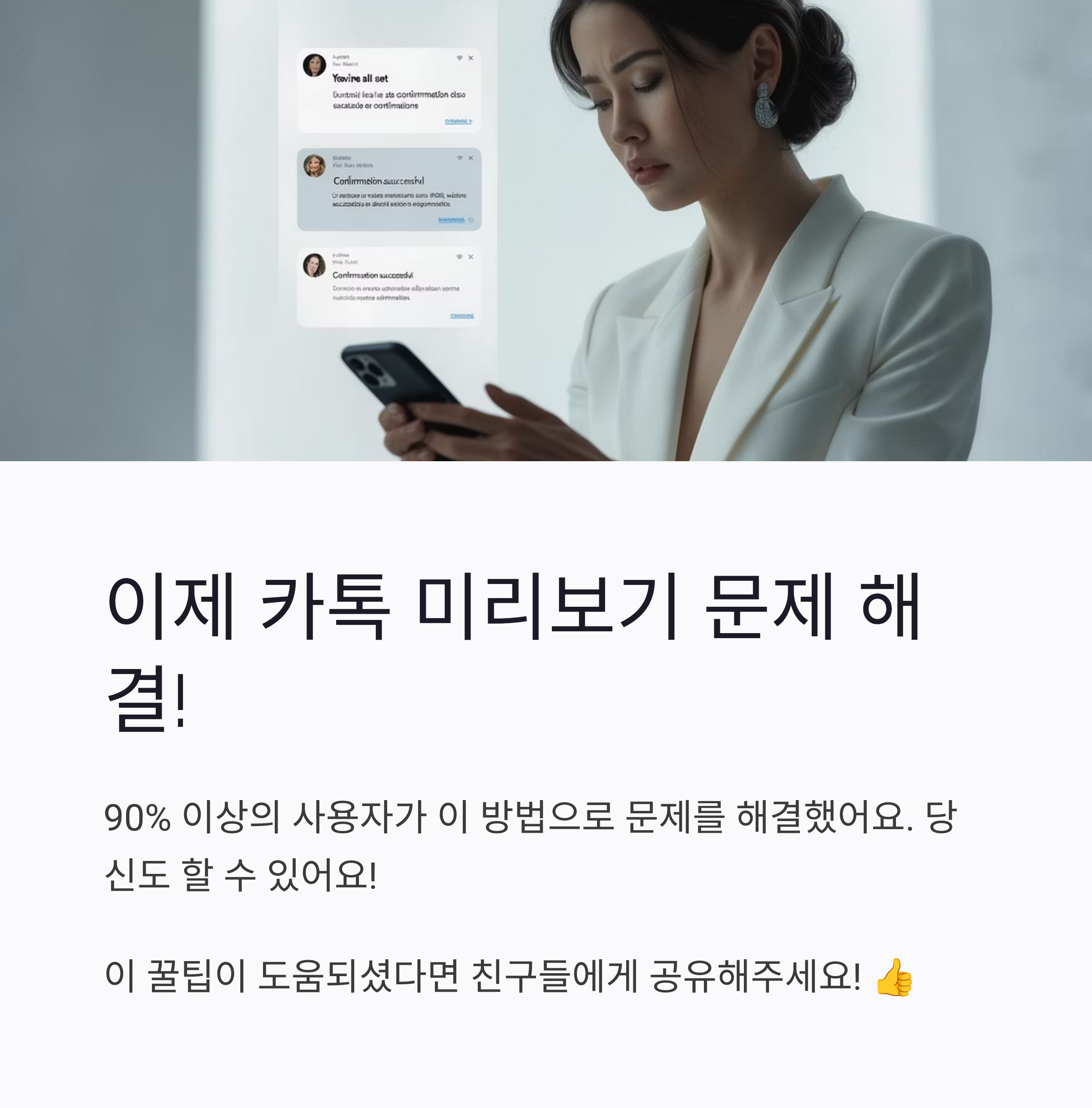 제가 이거 해결한 이후로는 진짜 살맛 나더라구요ㅋㅋㅋ 중요한 소식 바로바로 확인하고, 업무 카톡도 더 놓치지 않고요🕵️♀️ 실제로 이 글 보시고 댓글로 알려주신 분들 중 90% 이상이 동일한 방법으로 문제 해결하셨대요!
