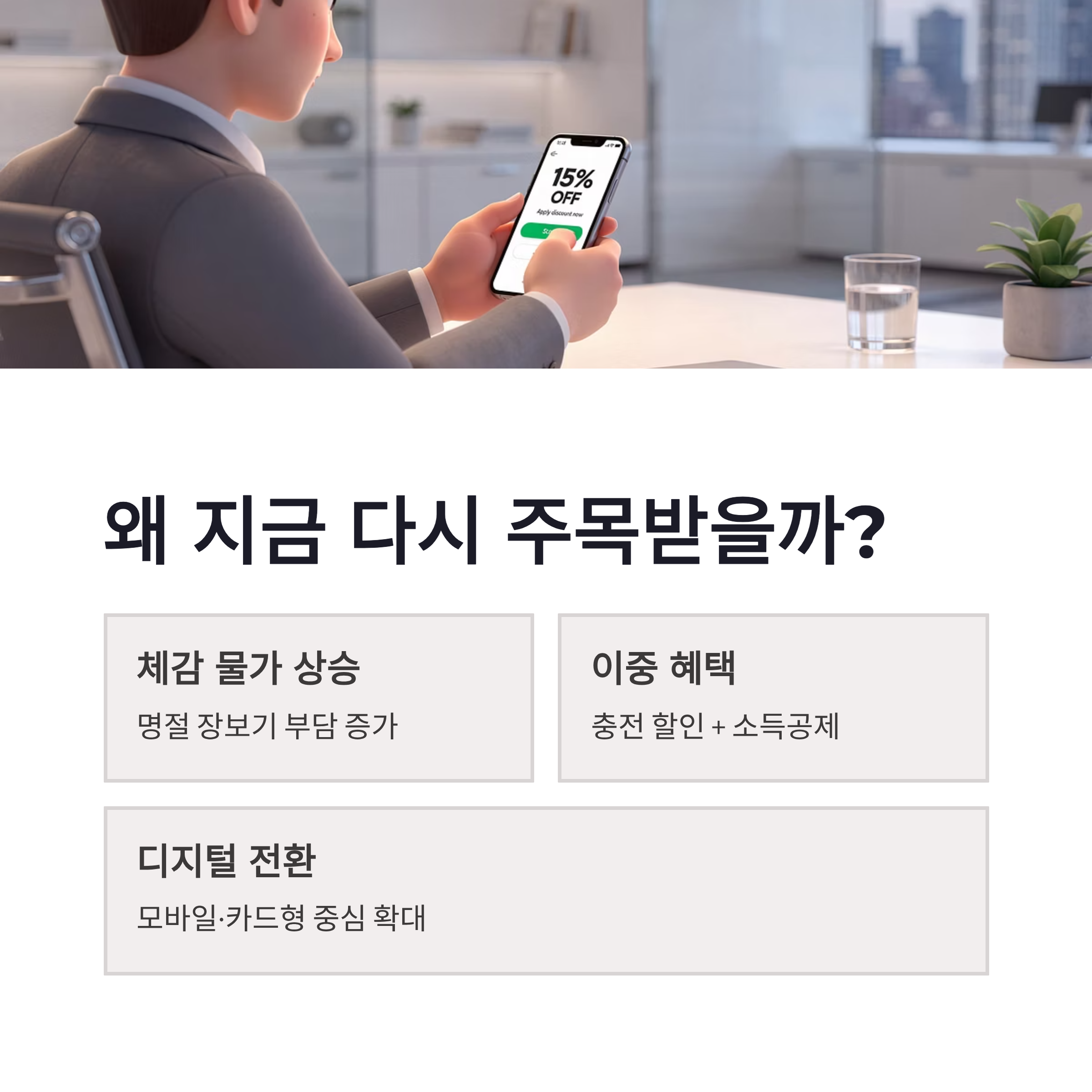 저는 개인적으로 카드형이 제일 편했어요. 기존 카드 쓰듯이 결제되니까 관리도 쉽고, 할인도 바로 적용돼서 헷갈릴 게 없더라구요. 온누리상품권 설날 할인은 특히 명절 장보기 금액 큰 집일수록 체감 차이가 큽니다.