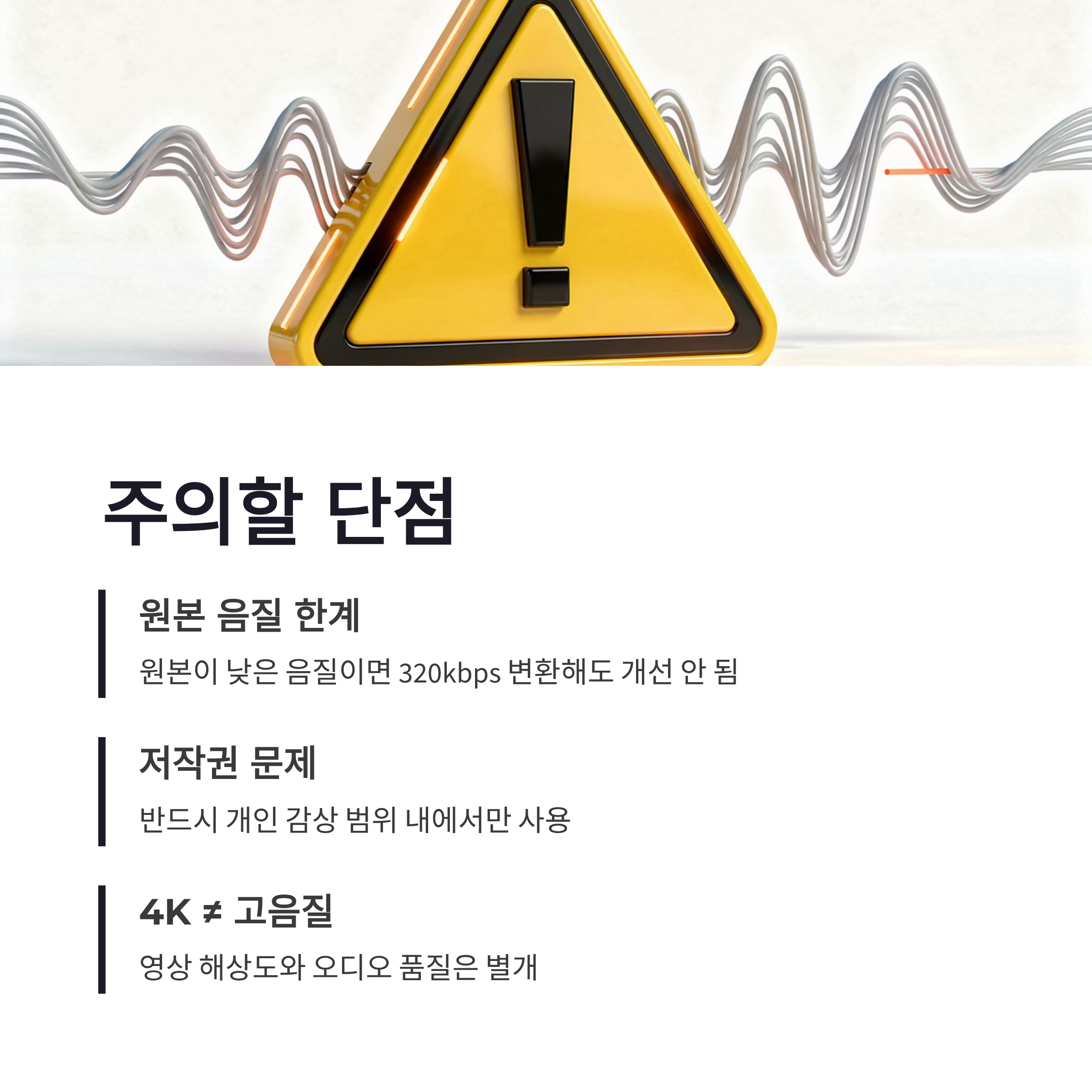 * 원본 음질이 낮으면 320kbps로 변환해도 한계 있음 * 저작권 문제는 반드시 개인 감상 범위 내 사용
