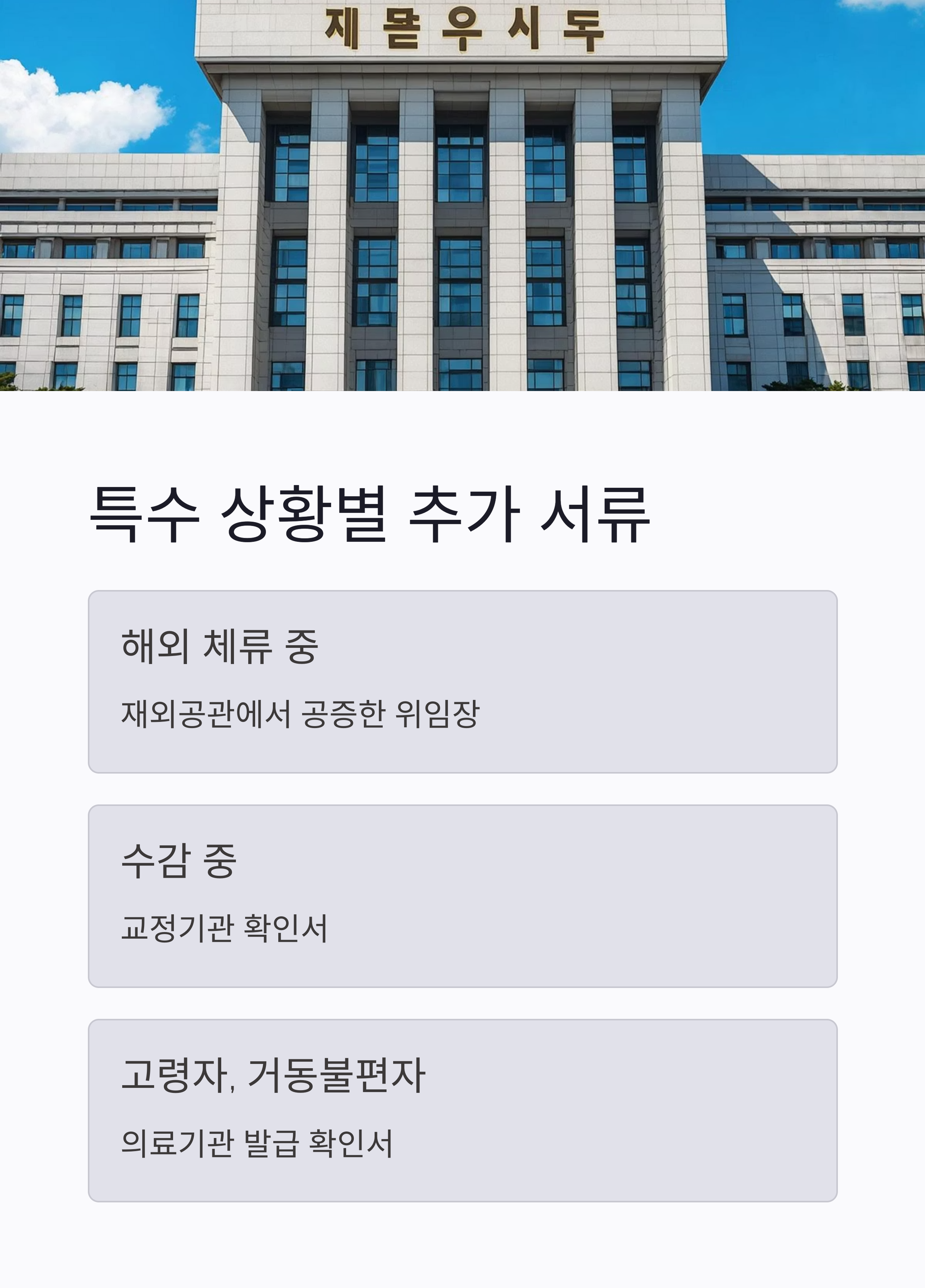 - 해외 체류 중: 재외공관에서 공증한 위임장