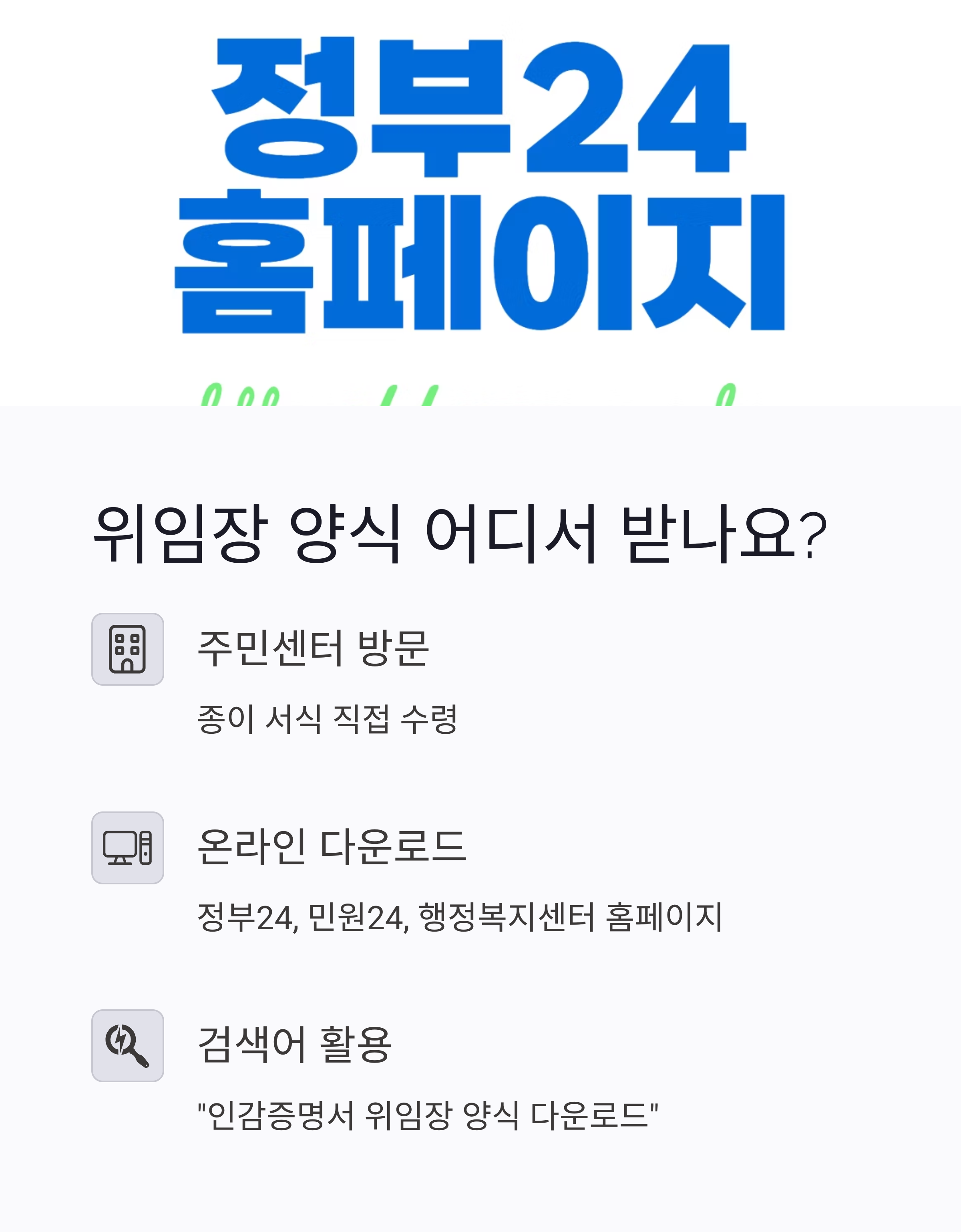 - ✔️ 위임장은 자필 작성 + 인감도장 필수