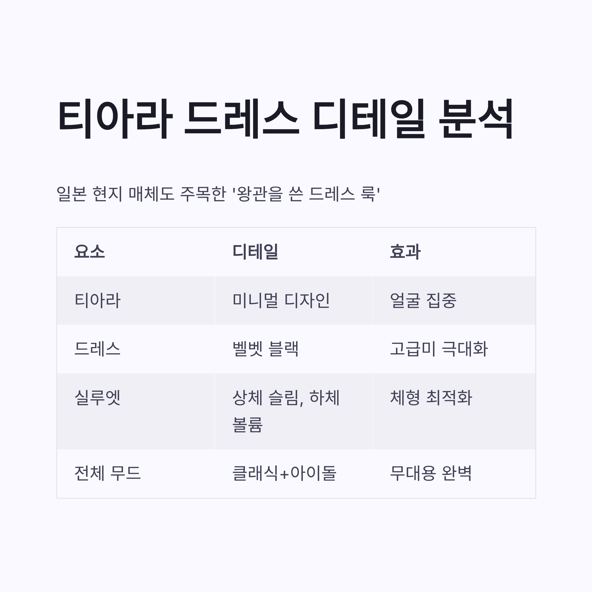 이번 장원영 스타일 분석에서 핵심은 티아라와 블랙 벨벳 포인트였어요. 일본 현지 매체에서도 ‘왕관을 쓴 드레스 룩’이라고 표현했을 정도니까요. 제가 유심히 본 건 소재랑 균형감이었는데요.