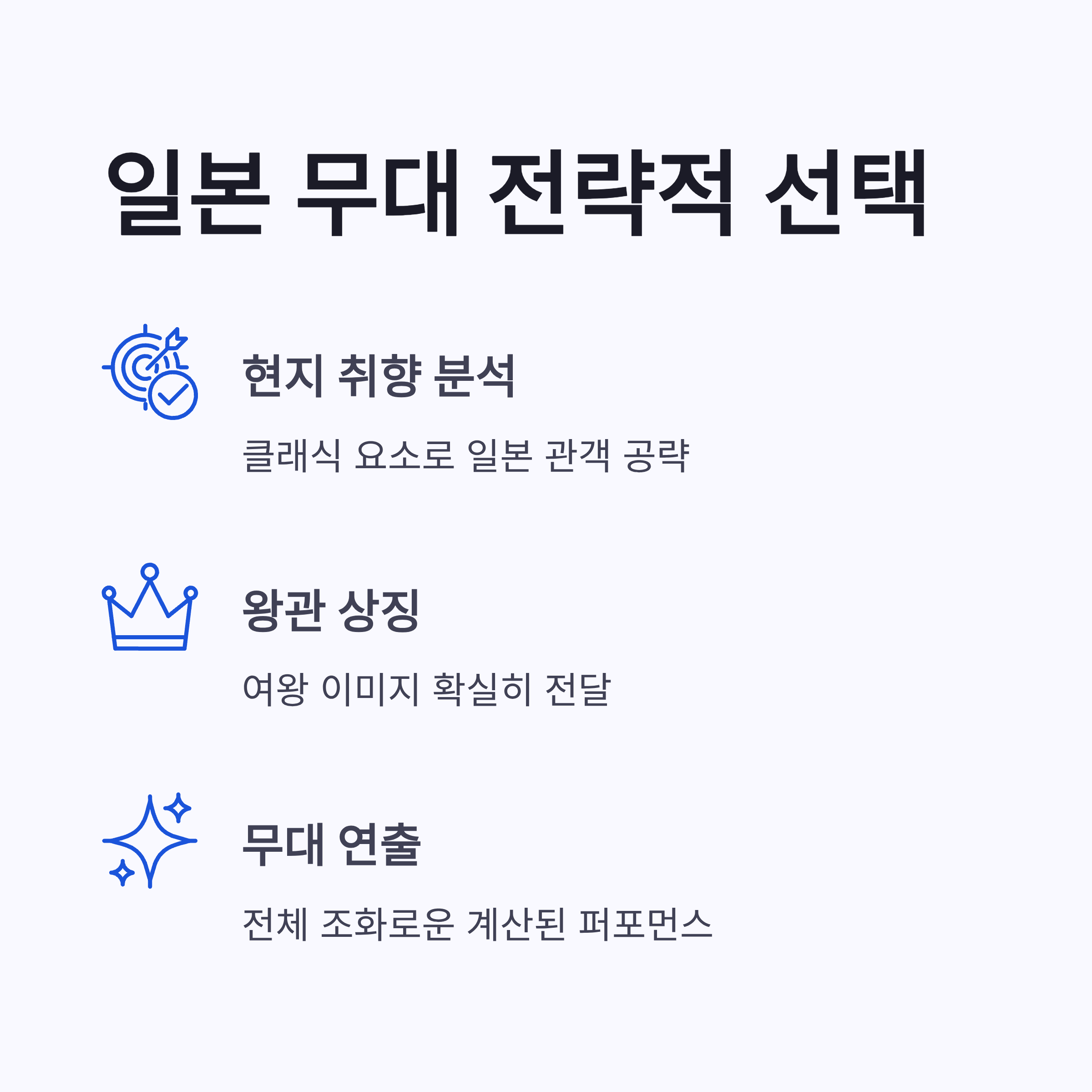 | 전체 무드 | 클래식+아이돌 | 무대용으로 딱 |