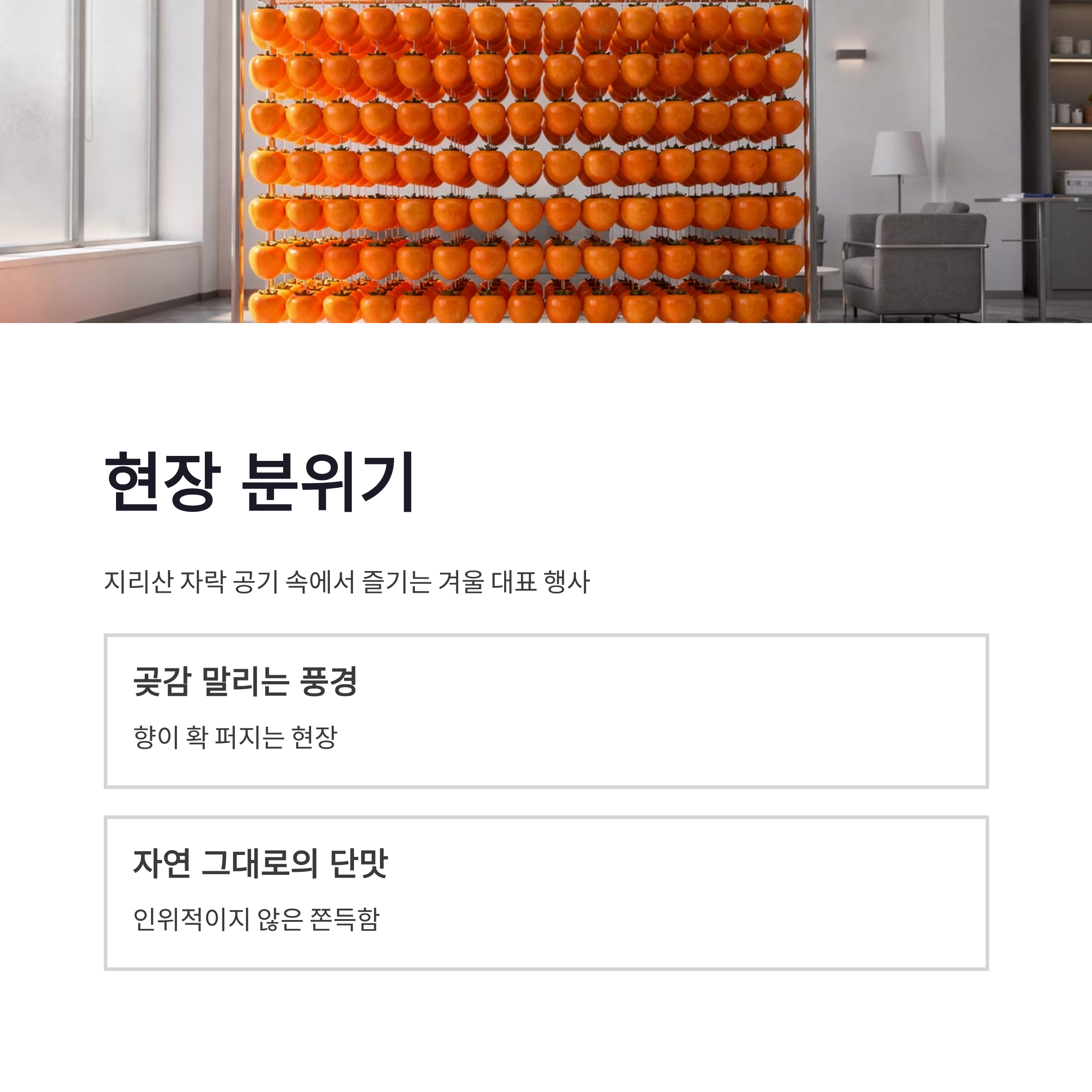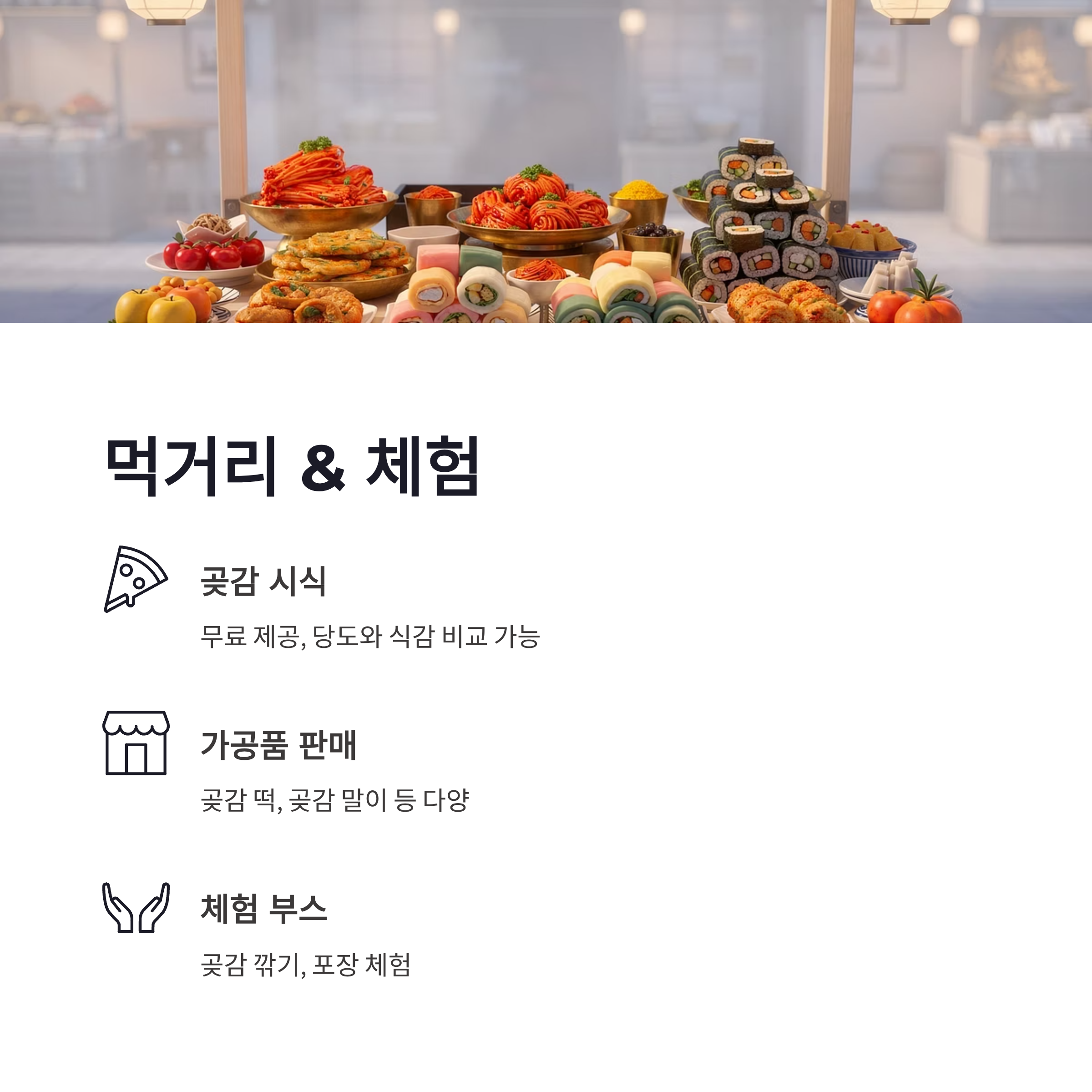 | 곶감 시식 | 무료 제공 | 당도·식감 비교 가능 |