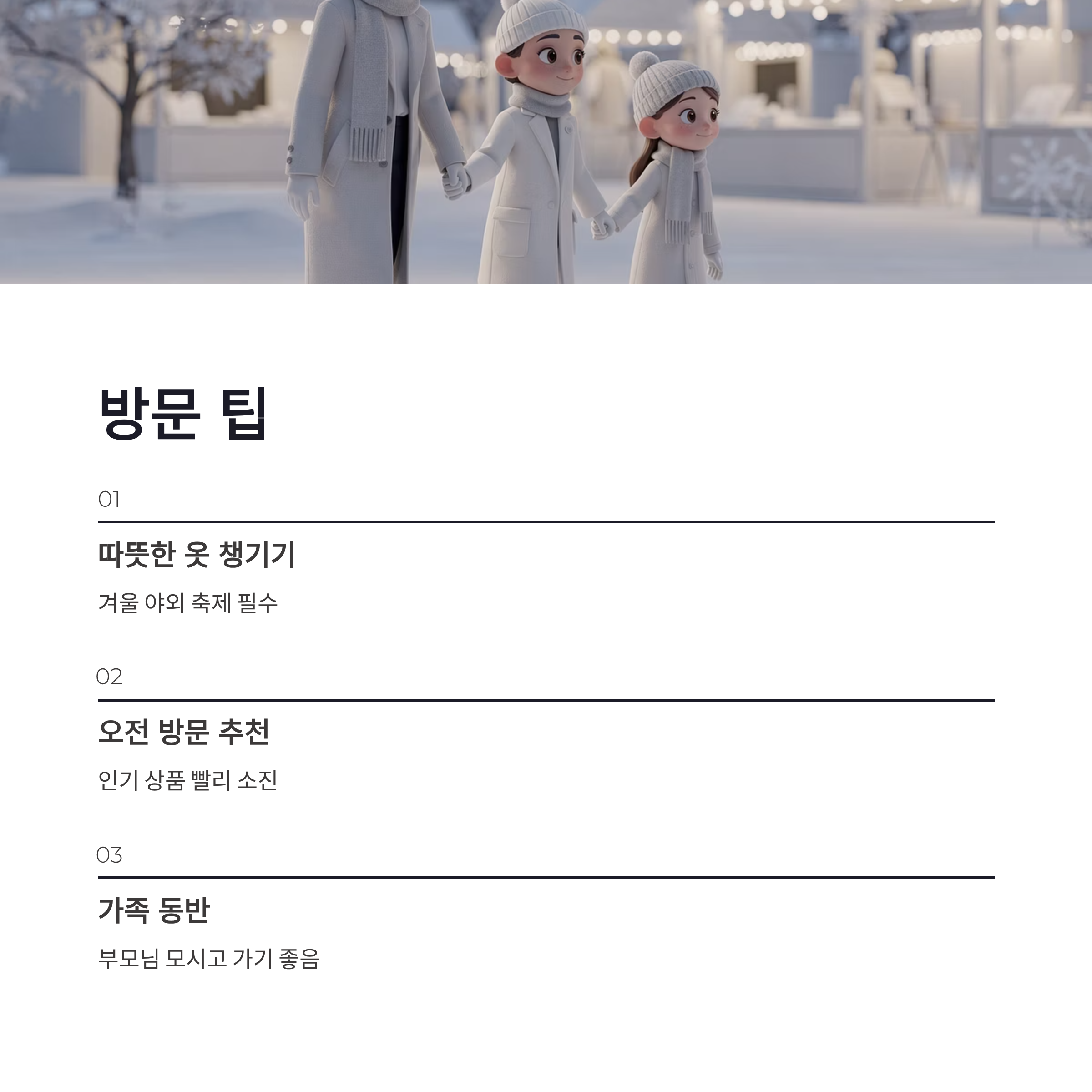 | 판매 팁 | 오후보다 오전 | 인기 상품 빨리 빠짐 |